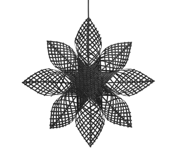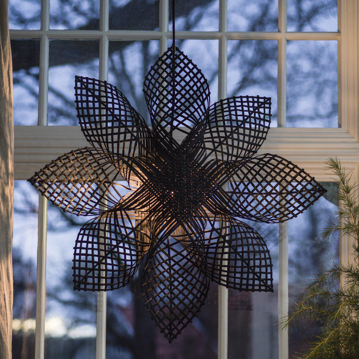 Klassisk, håndlaget stjerne i rotting. Stjernen kommer med en 3,5 meter lang svart plastledning. Noen nyanser i fargen kan forekomme da dette er et naturprodukt.