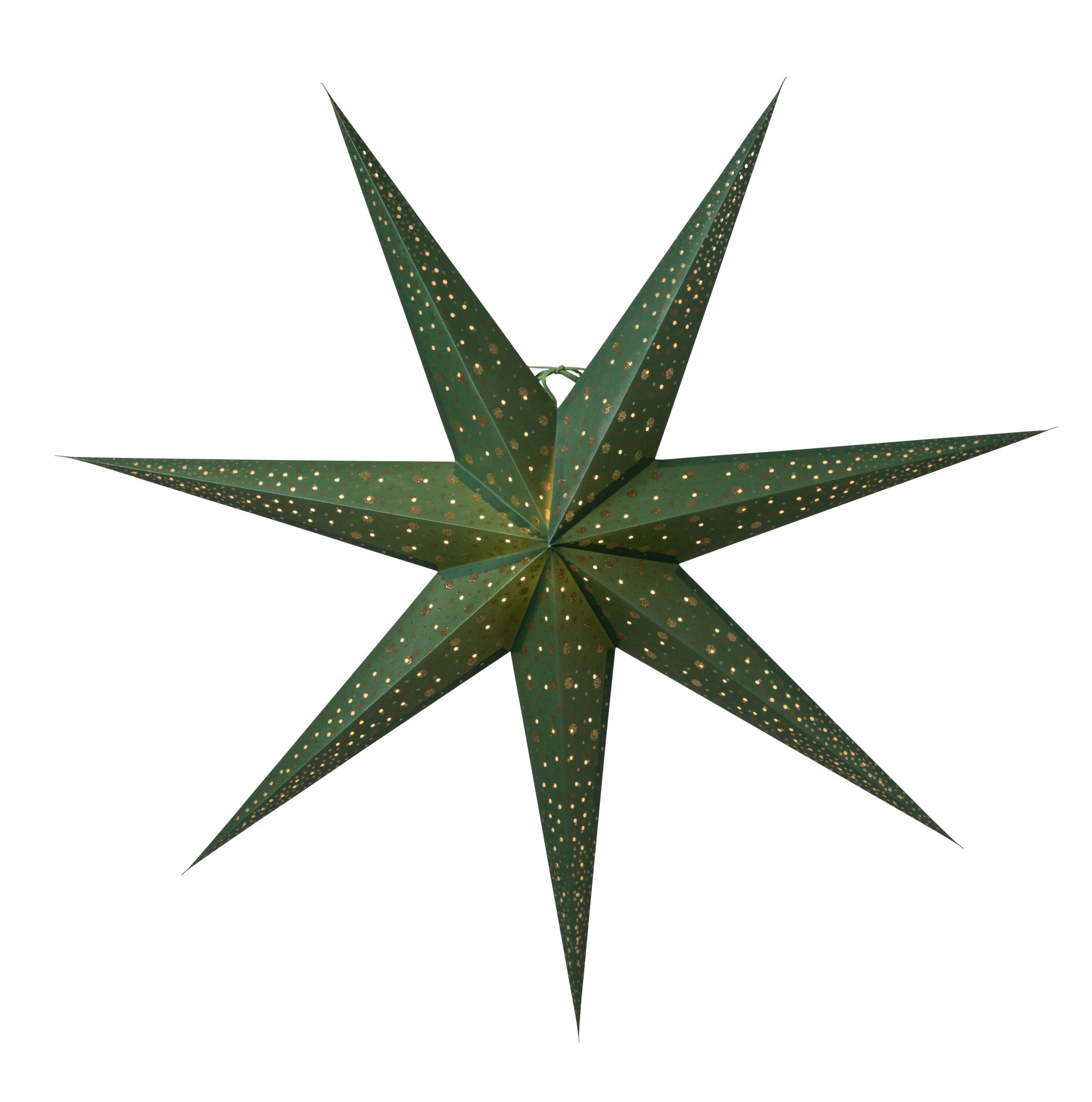 Eksklusiv papirstjerne i grønn med mønster i gull