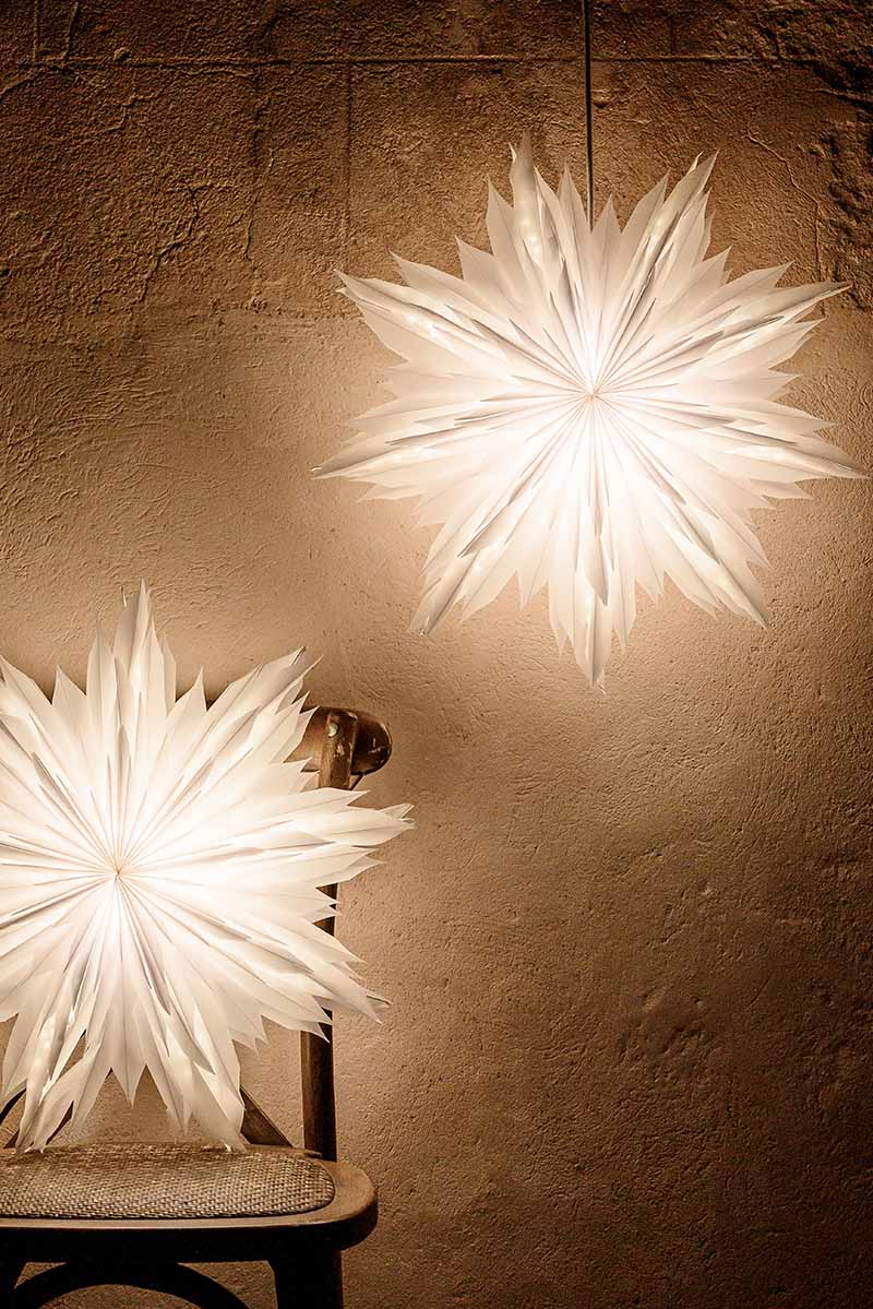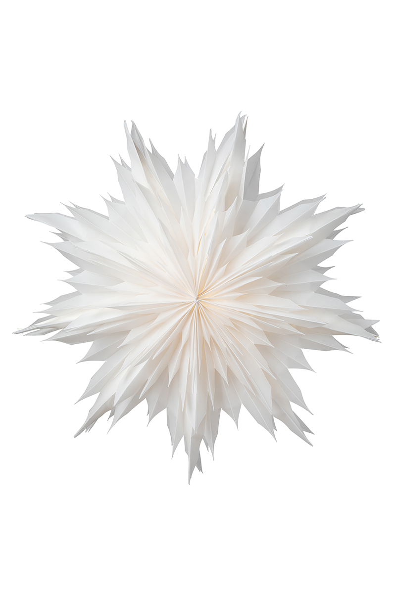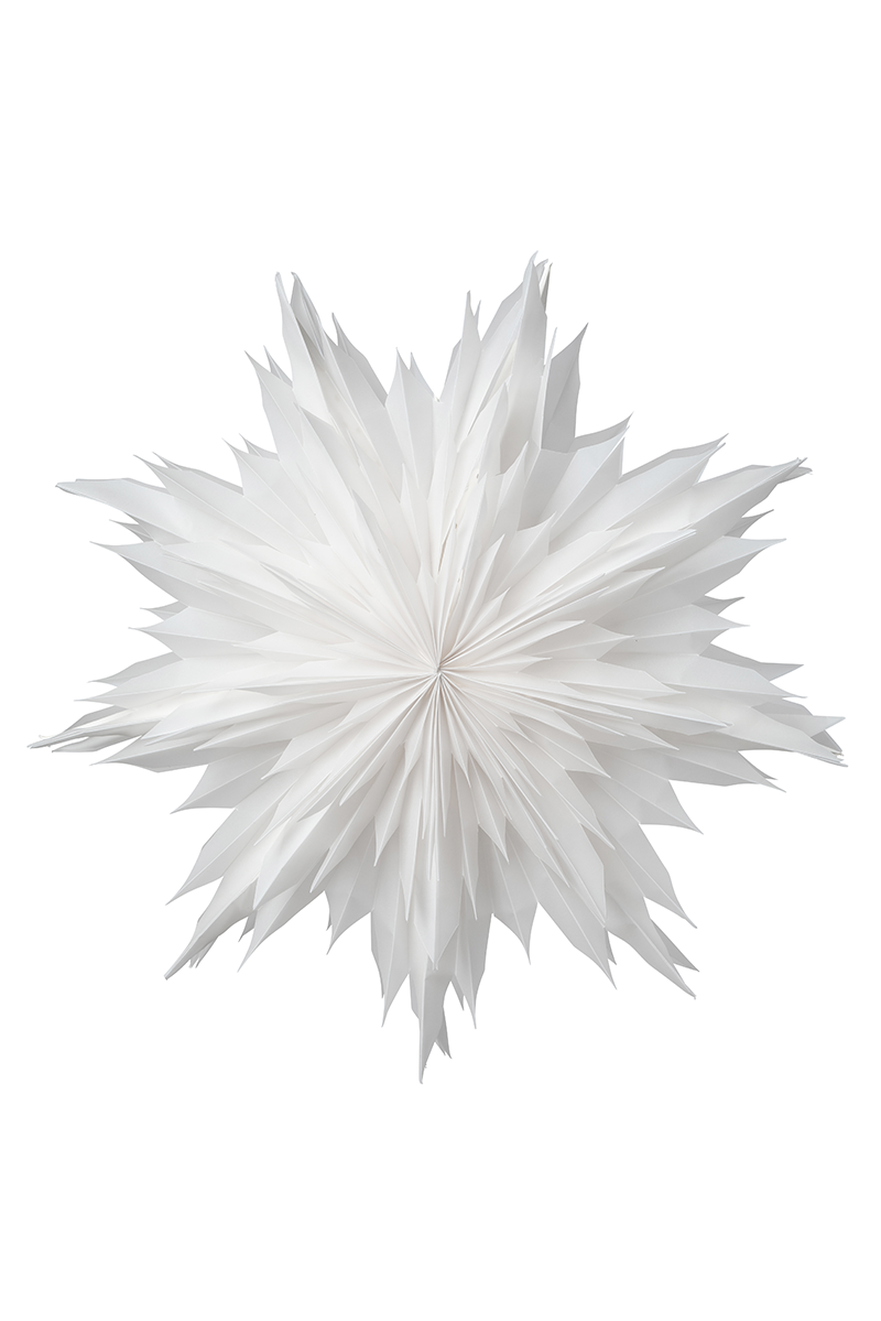 Oslo 60 hvit er knitrende hvit med spisse topper og daler som ligner Norges fjorder og fjell. Laget av et blank, halvgjennomsiktig papir. Leveres i en hvit og elegant eske.