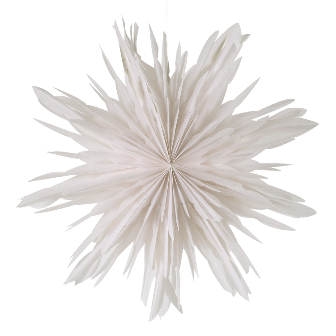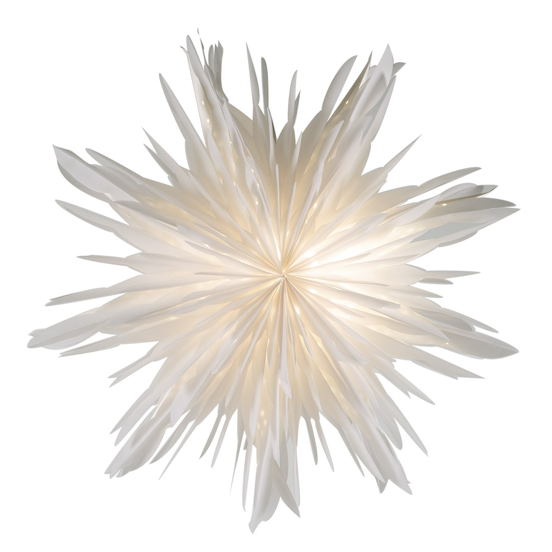 Som en iskrystall i vinternatten fremstår papirstjernen Reykjavik 60 som hvit. En julestjerne som sprer et magisk hvitt lys gjennom det halvtransparente, blanke papiret. Forsiktig vekt og limt for hånd. Leveres i en hvit, elegant eske, slik at du kan lagre stjernen trygt og slik at den holder seg fin år etter år.
