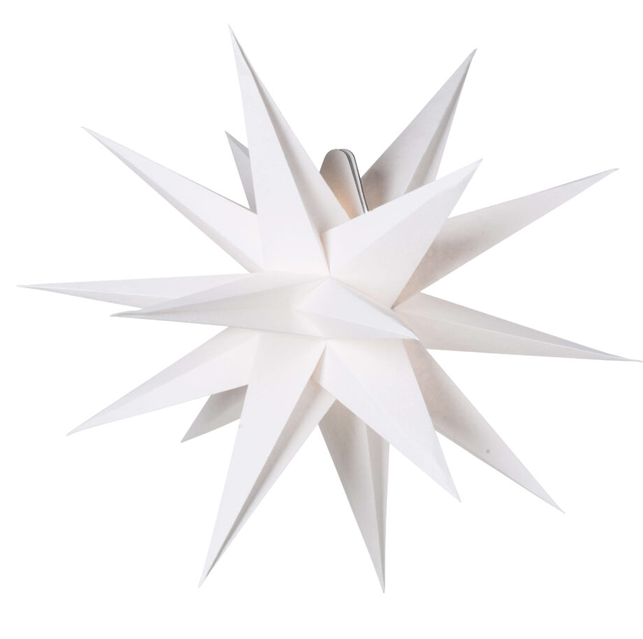 Sputnik 60 white er en spektakulær stjerne med stjernespisser i alle retninger, noe som gir en kul 3-dimensjonal følelse. Som alle våre stjerner er Sputnik forsiktig brettet og limt for hånd. Limet er spesielt utviklet for å takle det temperaturskiftende nordiske klimaet.