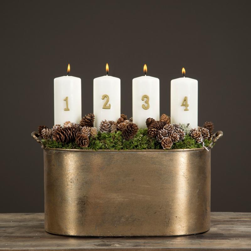Dekorative tall 1-4, til lys for advent i forgyllet metall. Enkelt stikkes inn i lyset.