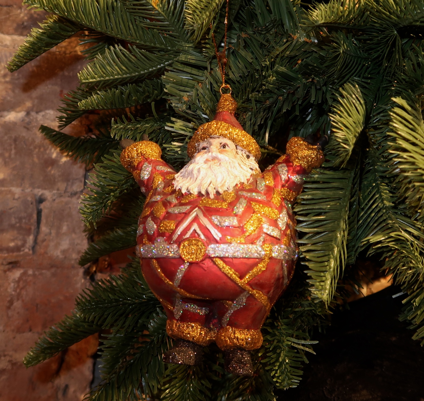 Antikk julenisse. Dekorativ til å henge i en vindu, eller på juletreet.