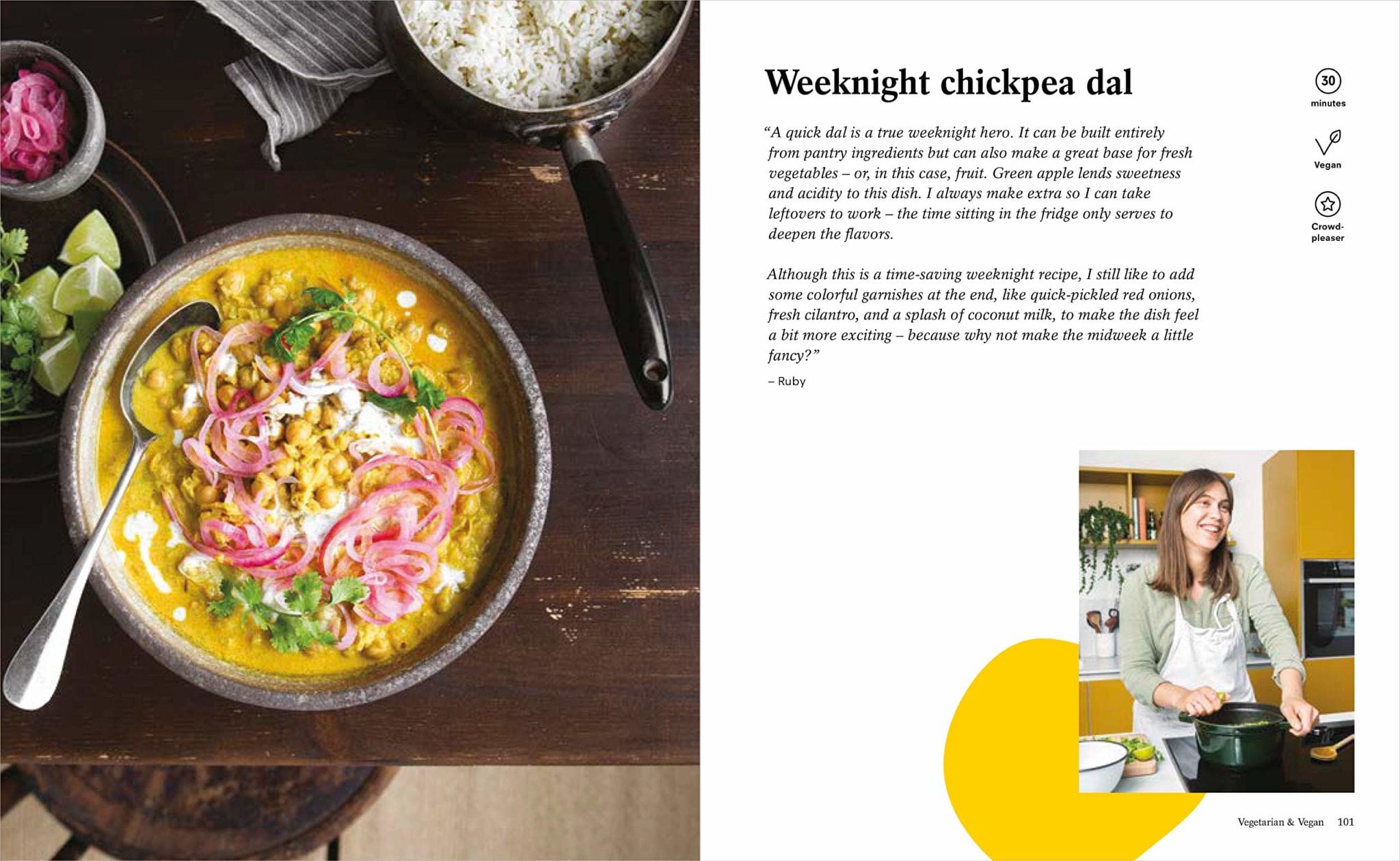The experts behind the popular cooking platform show new cooks how to get comfortable and be successful in their own kitchens. Since its launch in 2014, the Kitchen Stories app has acquired a dedicated following among seasoned and beginner cooks alike. Now the best of their recipes, expertise, and tips are distilled into this essential cookbook that will help even a timid home chef feel like a pro. Designed with the elegant simplicity their fans have come to expect, Anyone Can Cook focuses on dinners–for many the most important and stressful meal to prepare. The book offers recipes that take no more than one hour from kitchen to table, and many can be cooked in a single pot or pan. Most importantly, the book is designed to help beginner cooks develop basic skills, stock their kitchens and pantries, and master easy yet elegant meals. From the correct way to hold a knife, the art of sauteing vegetables, and composing the perfect salad bowl to popular basics such as stir fries, chicken cutlets, meatballs, and sheet pan salmon, the book’s instructions are clear, concise, and accompanied by large full-color photographs to match. Best of all, Anyone Can Cook demystifies many techniques and dishes that new cooks think are beyond their skill level, and even encourages adaptations based on diet and preference. If the words “chiffonade” or “homemade pesto” make you nervous, the chefs and editors at Kitchen Stories are here to tell you that anyone, including you, can cook, and cook well.