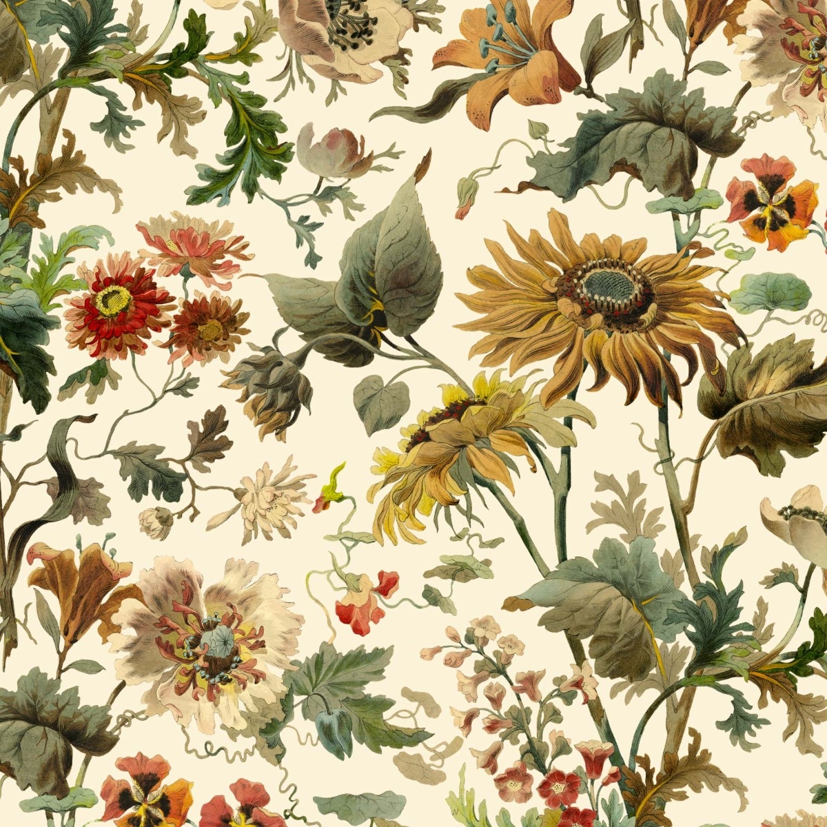 I den Arthurianske mytologien var øya Avalon et jordisk paradis, et sted der frukten ble snørt med magi og blomstene blomstret i overnaturlig skjønnhet. Så følger det at AVALON-tapetet blomstrer med utsøkte solsikker, valmuer, tusenfryd og liljer. Håndtegnet i blyant og akvarell på et ‘Noir’ bakteppe, og legemliggjør dette mystiske arkivet.