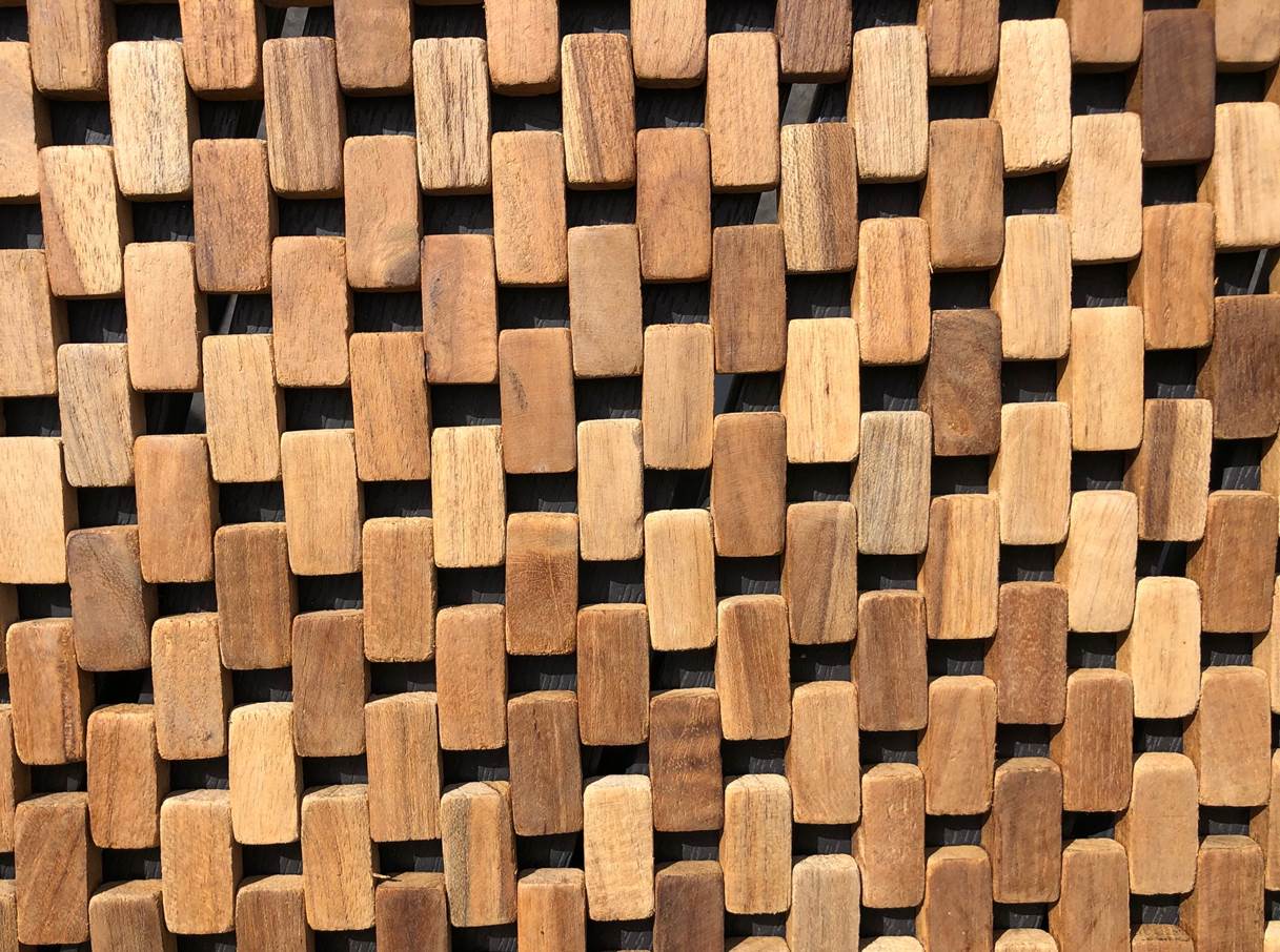 Badematte i lys teak til bad eller uteplassen! Laget av firkantede trebiter.