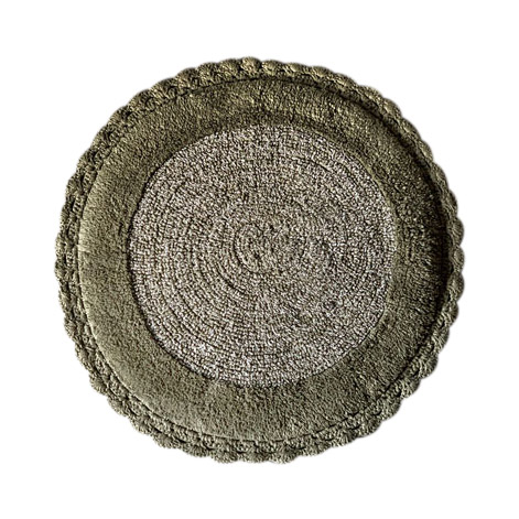 Dekorativ, rundt badematte med heklet kant. Kan vaskes i vaskemaskin på 30 grader!