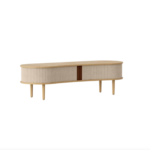 En flerbruksbenk for sitteplasser eller for å skjule utstyret ditt under fjernsynet. Med kabeluttak bak er det lett å skjule de rotete ledningene. Plassert i gangen vil den lagre alle uteklærne dine, mens du kan ta plass mens du tar på deg skoene.