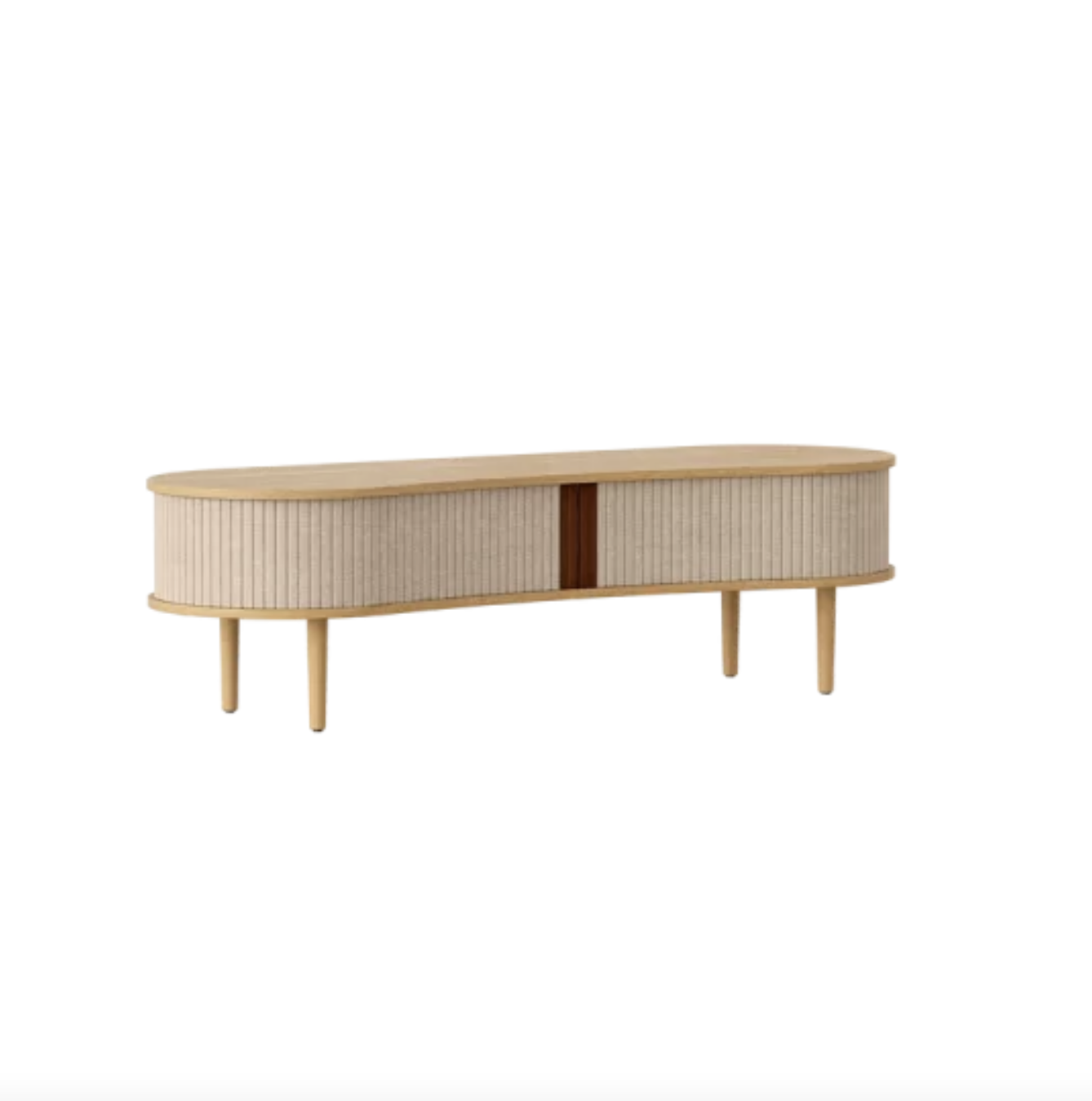 Audacious benken er tilgjengelig i eik, mørk eik og sort eik med tamburdører i stoff eller kunstskinn i åtte nøye utvalgte farger.