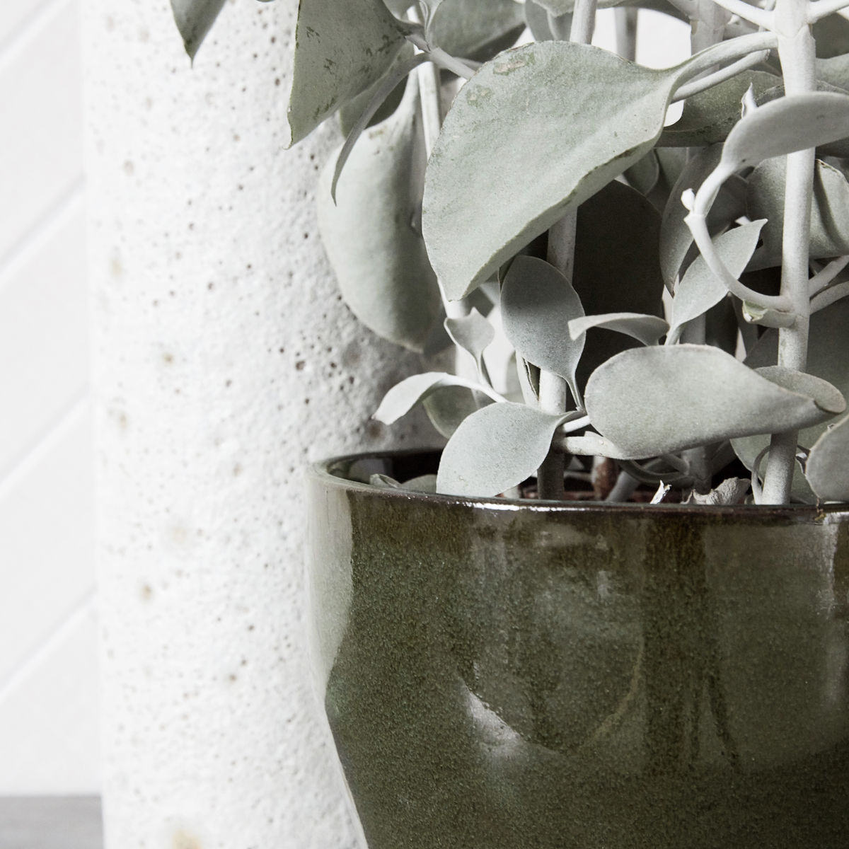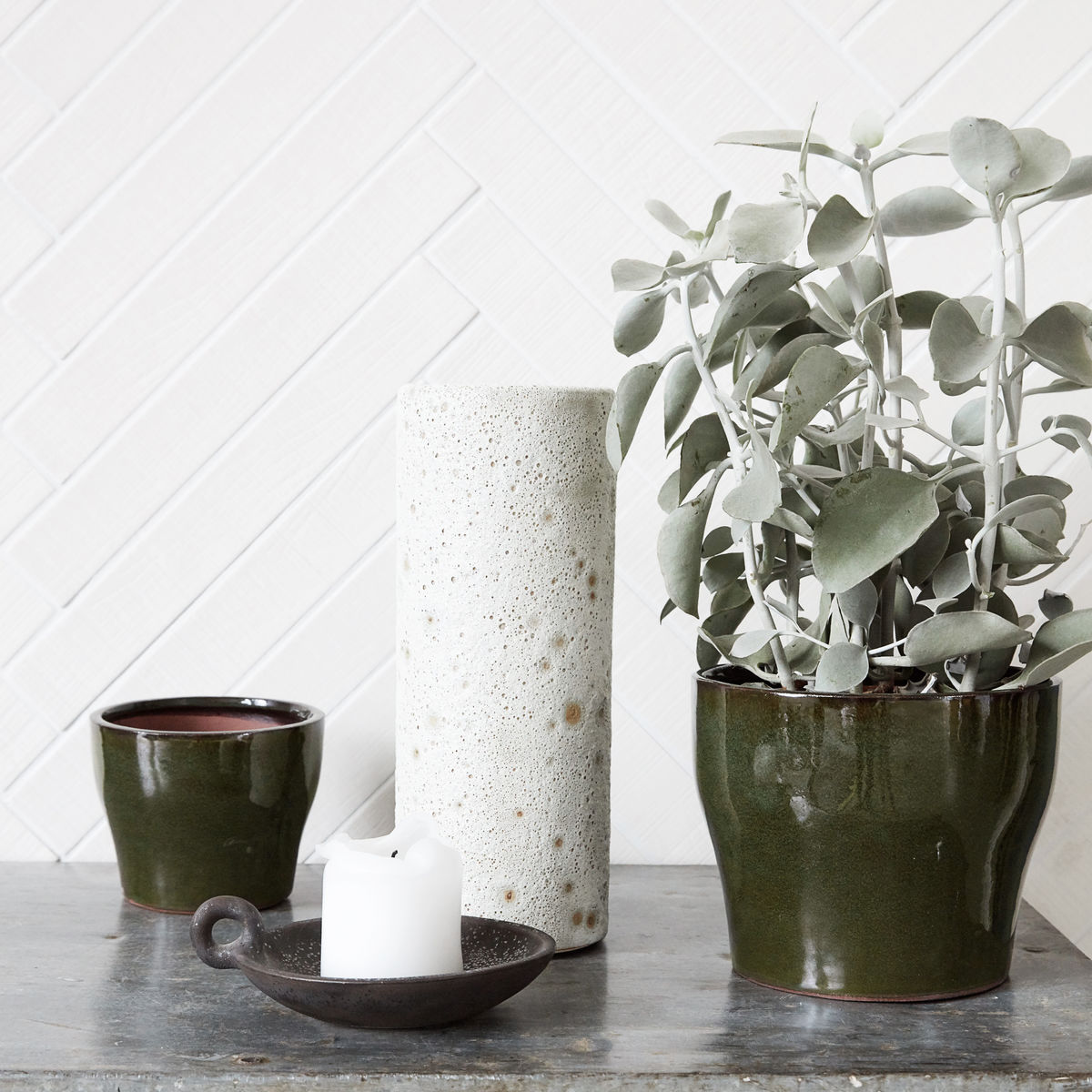 Dekorativ blomsterpotte i keramikk, med en unik overflate. Fargen og teksturen kan variere fra produkt til produkt, men tilnærmet lik bilde.