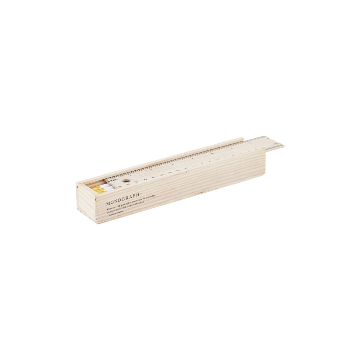 Disse vakre blyantene fra House Doctor kommer i en fin treboks, med linjal. Blyantene kommer i en fin hvit farge og med en praktisk viskelær på enden.