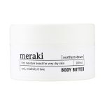 Sørg for å beskytte huden med en fett og god fuktighetskrem. Body butter fra Meraki etterlater huden myk, god og trekker hurtig inn i huden. Inneholder sheasmør og økologiske oljer, fra oliven, solsikke og avocado. Duften Northern Dawn er disker og forfriskene. Bruk Body butter på ren, tør hud, masser kremen inn i huden.