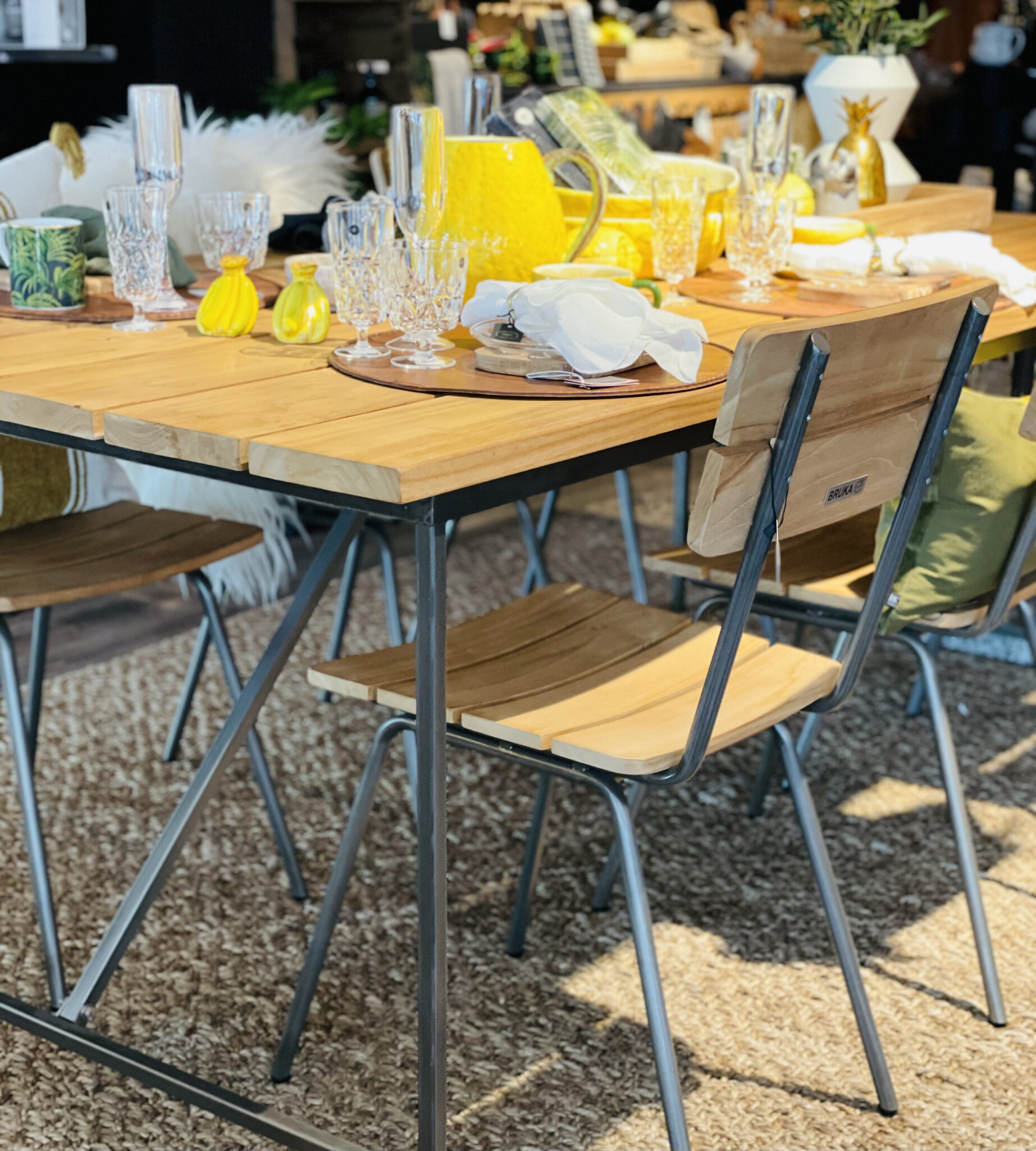 - Materiale: Teak og metall