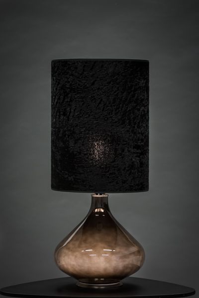 Håndlaget lampefot i glass fra spanske Thawaru med lys i foten. Alle er håndlaget og de kan derfor variere litt i fargen når lyset i foten er tent, fra lysere- til mørkebrun. Når lyset i foten ikke er på ser lampefoten sort ut. Lampefoten lyser når skjermen tennes, man kan velge å skru av skjermen slik at kun foten lyser.