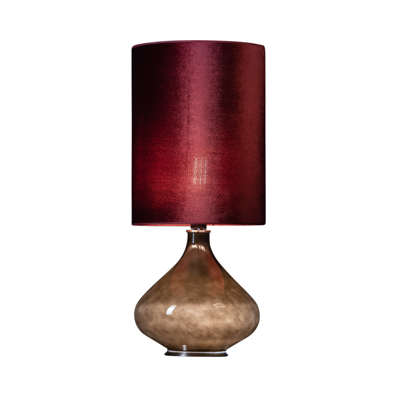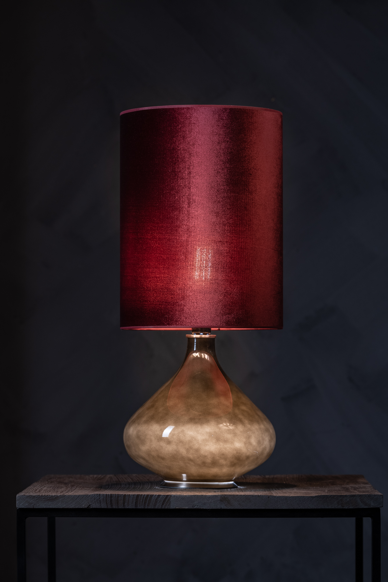 Håndlaget lampefot i glass fra spanske Thawaru med lys i foten. Alle er håndlaget og de kan derfor variere litt i fargen når lyset i foten er tent, fra lysere- til mørkebrun. Når lyset i foten ikke er på ser lampefoten sort ut. Lampefoten lyser når skjermen tennes, man kan velge å skru av skjermen slik at kun foten lyser.