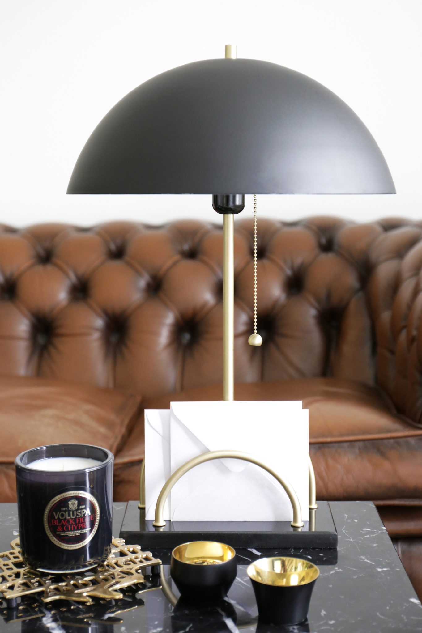Materiale: Sort, metall, messing og sort marmor.