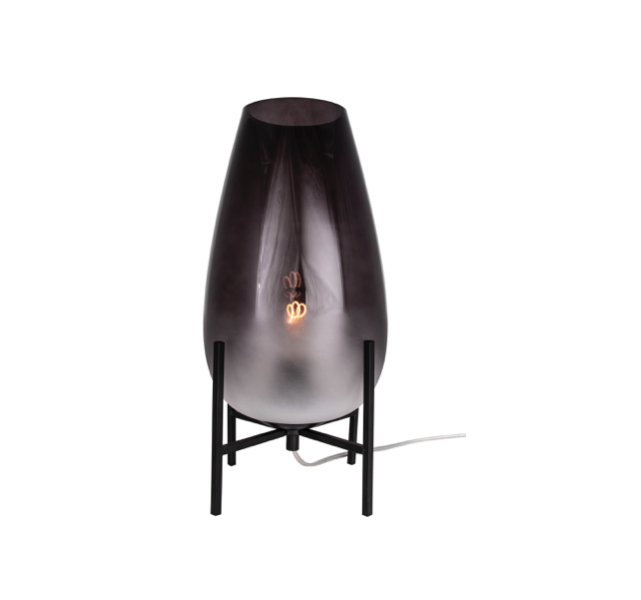 Bordlampe «Tulip» formet som en tulipan med røkt glass og sort metall stativ. Skaper et lunt og stemningsfylt lys.