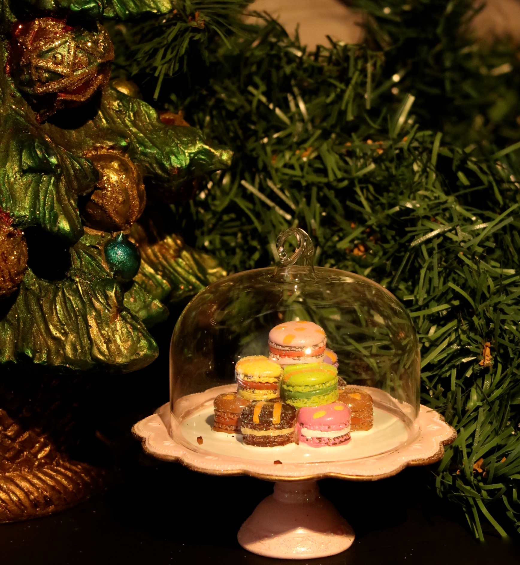 Dekorer juletreet med dine favoritt søtsaker fra vår candyshop, Makroner på et kakefat, også fint som dekor på et fat!
