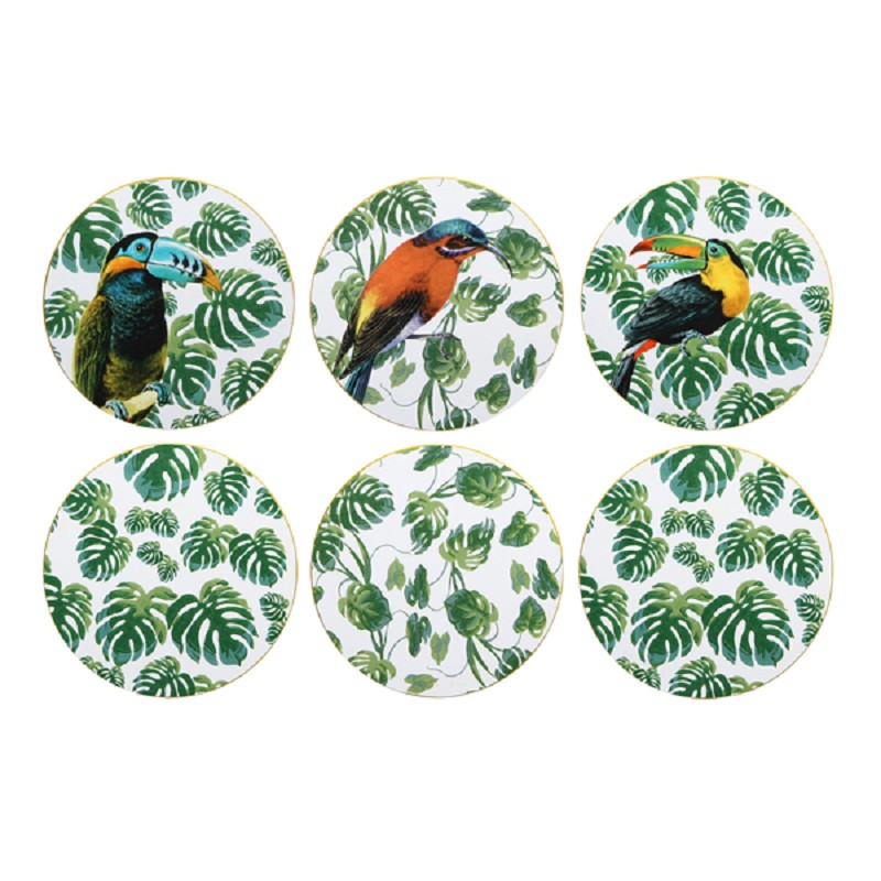 Dekorative små glassunderlag. Laget i kork med folie og print, 6 stk i pakken med 3 ulike motiv.