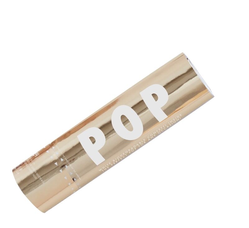 Vri bunnen for å slippe konfettien høyt opp i luften. Denne kanonen er pakket for å matche festdekorasjonene i hvitt. Nyt!