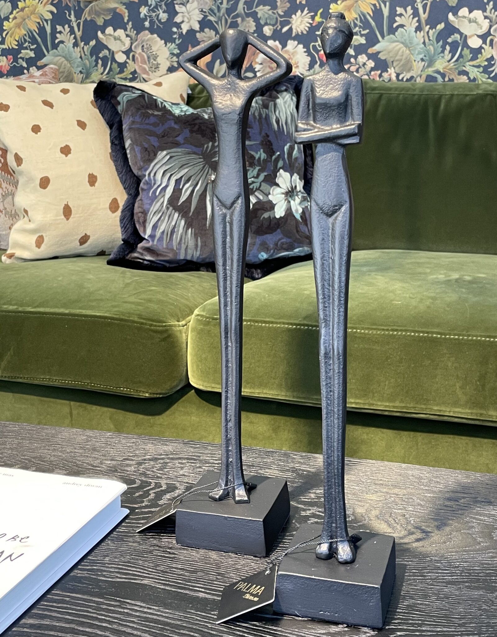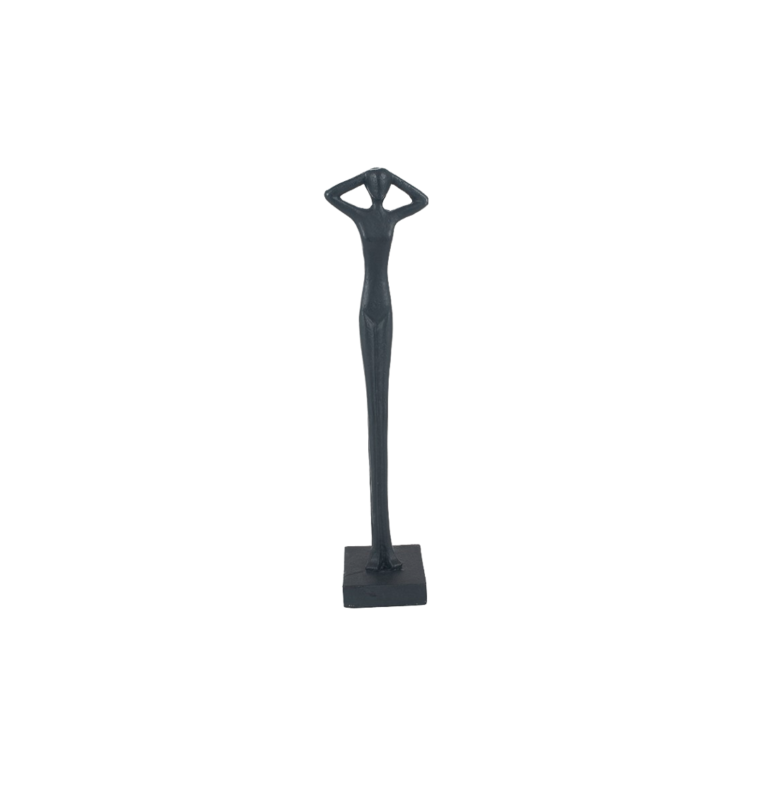 Dekorativ skulptur av en kvinne med hendene på hode i sort metall. Håndlaget med delikate detaljer. Dette produktet er perfekt som et midtpunkt i hjemmet ditt.