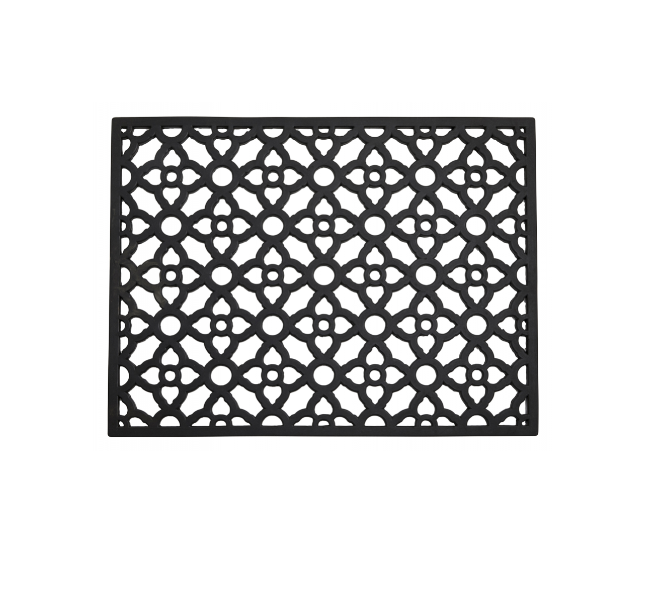 En praktisk dørmatte i sort gummi til ytterdøren.