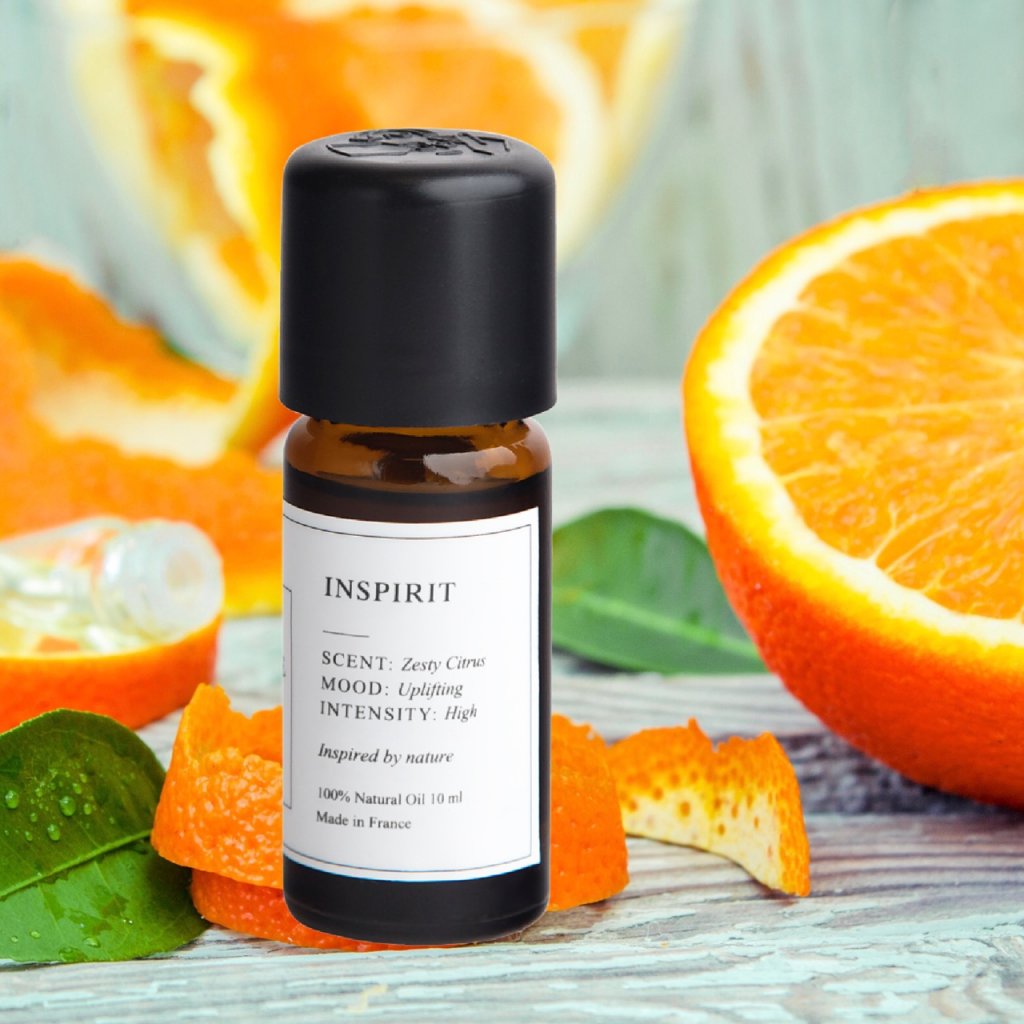 100% naturlig duftolje | Inspirit – Aroma av glødende oransje, mandarin og grønn bergamot tilført hint av urt Lavendel og kamille. INSPIRERT AV NATUREN