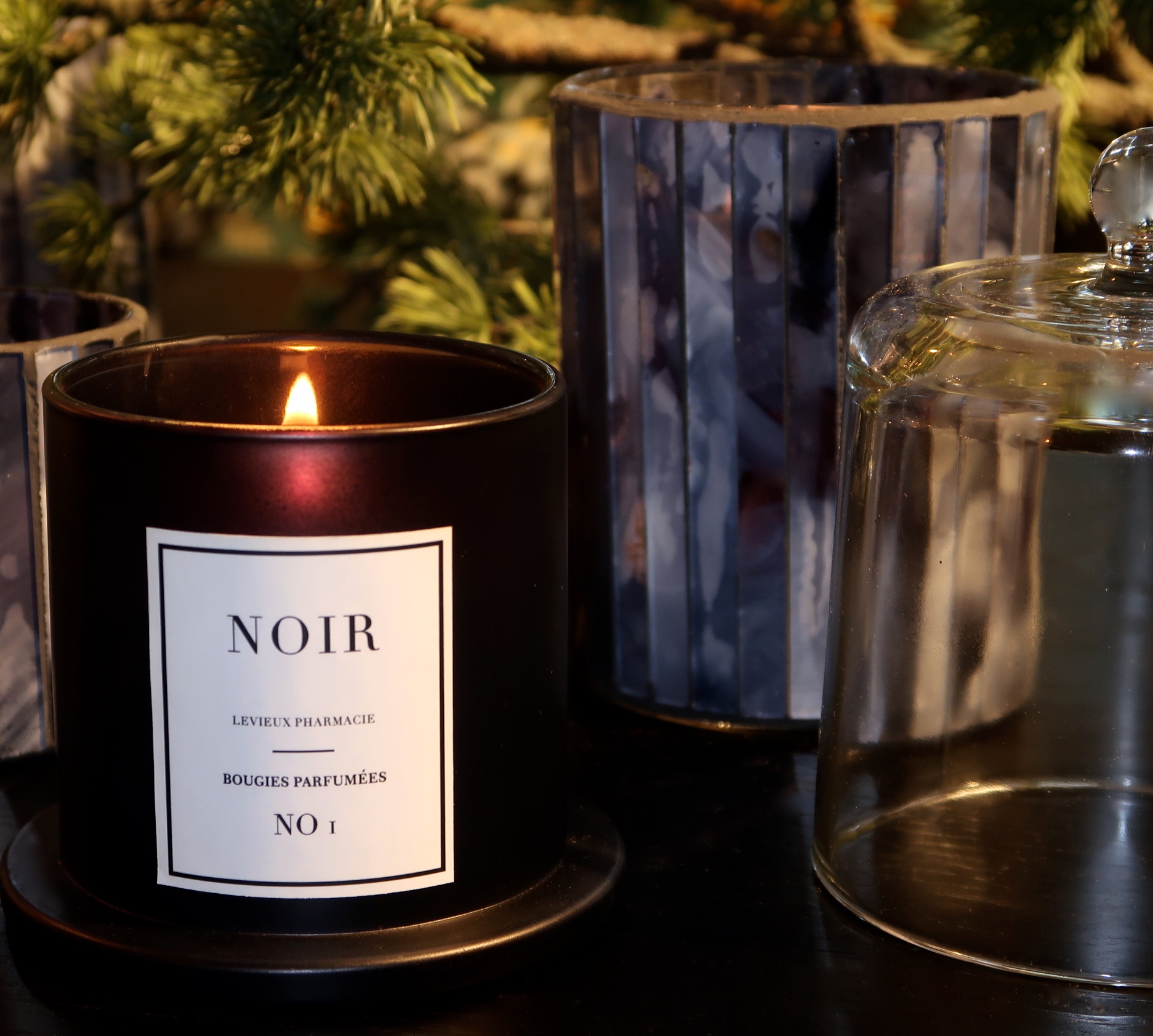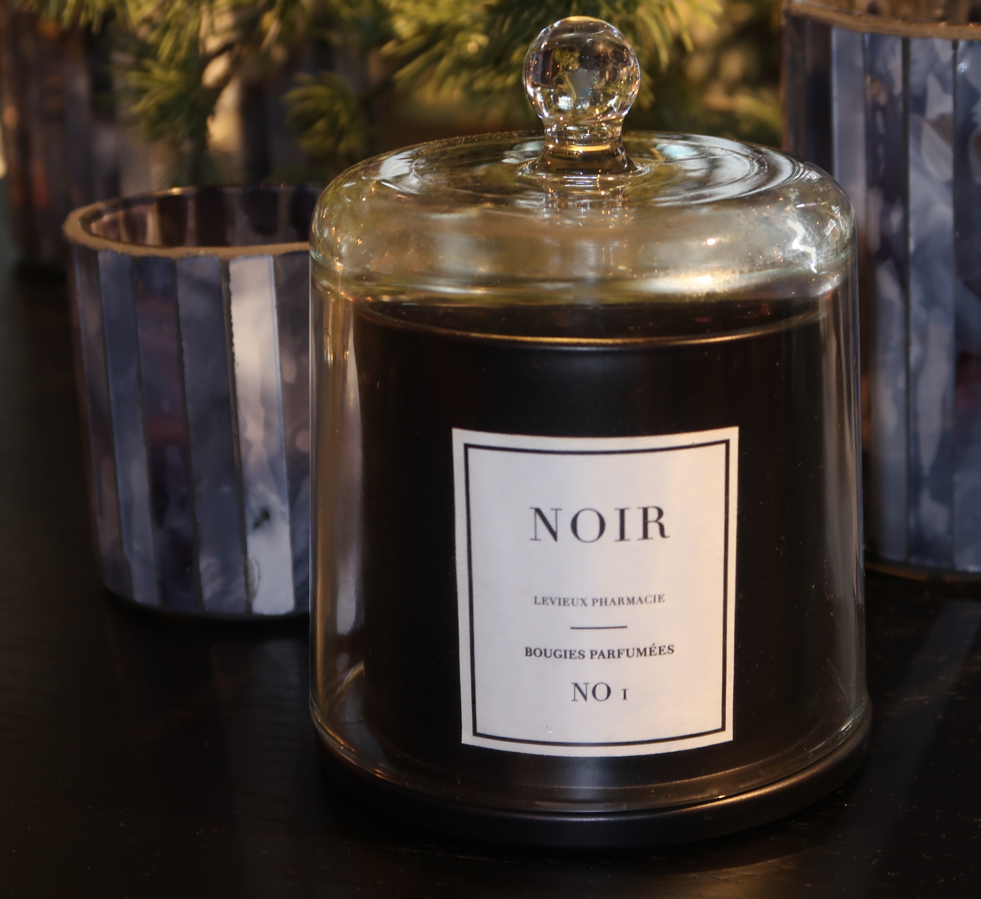 Duftlys i sort matt glass med glasscover. Lukter som nystekte pepperkaker, dekorativt også etter at lyset er brukt opp.