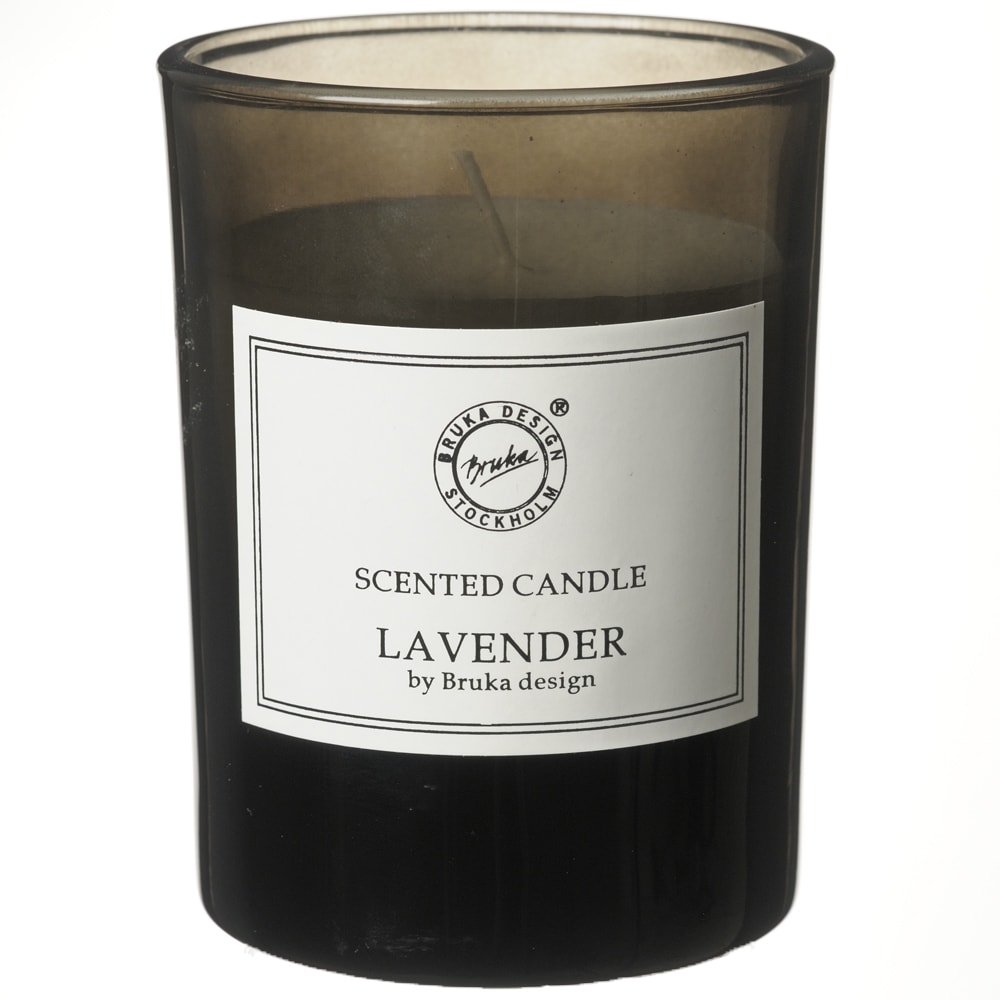 Duftlys, lavender i smoked glass. Brenntid er 33 timer, laget av parafin.