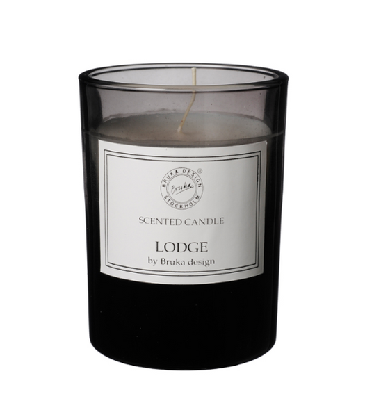 Duftlys, lodge i smoked glass. Brenntid er 33 timer, laget av parafin.