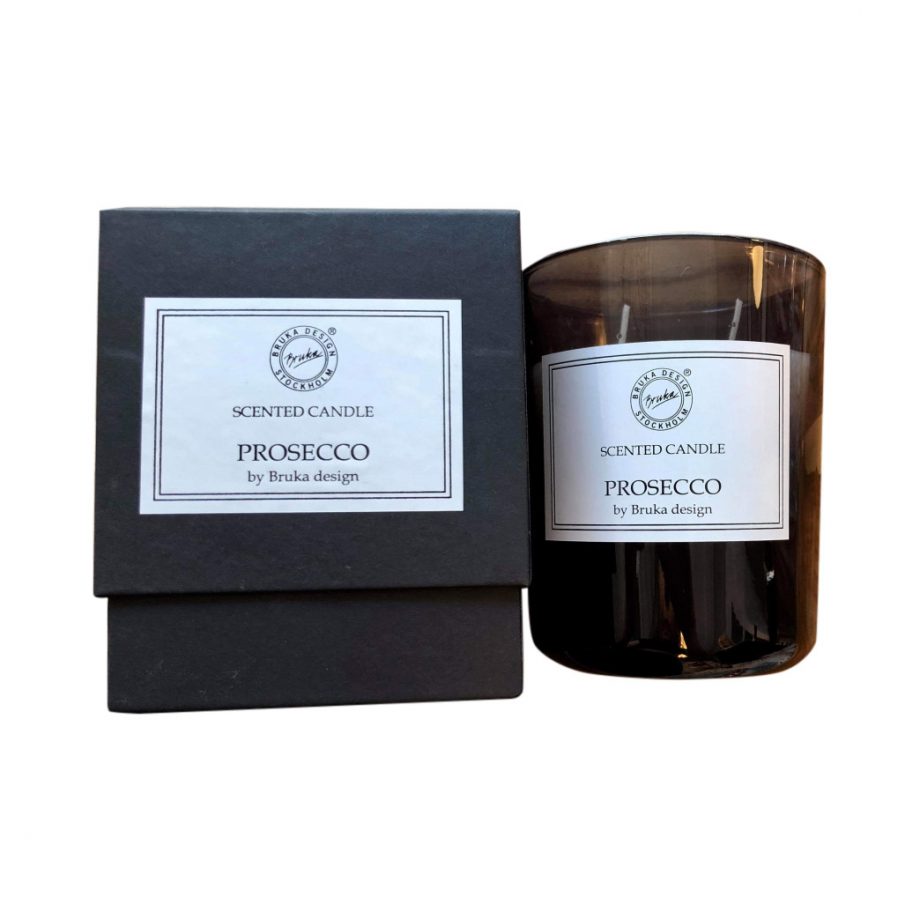 Duftlys, prosecco i smoked glass med to veker. Brenntid er 70 timer, laget av parafin.