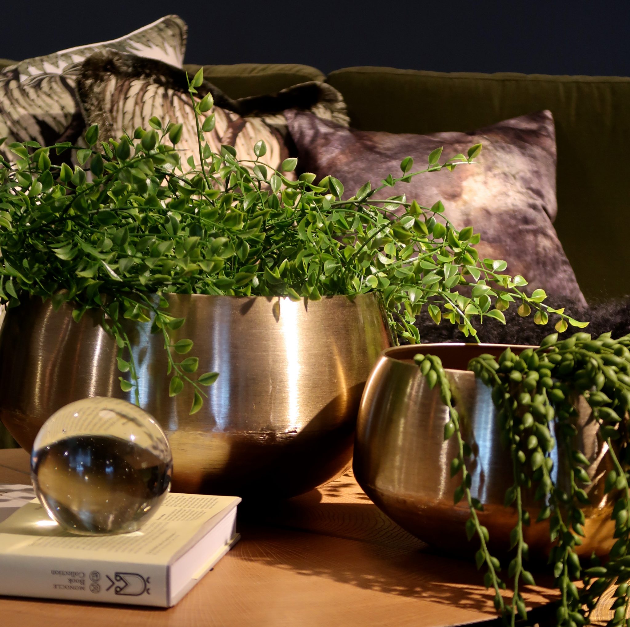 Stilig fat/bolle «Edge» i børstet messing. Velg mellom 2 forskjellige størrelser.