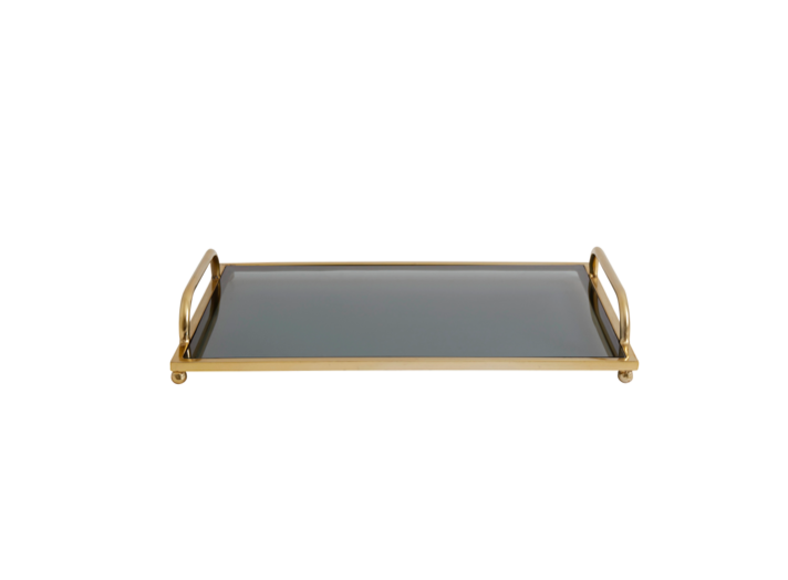 Fantastisk flott brett med forgyllet metall og sort glass, stilrent og lekkert.