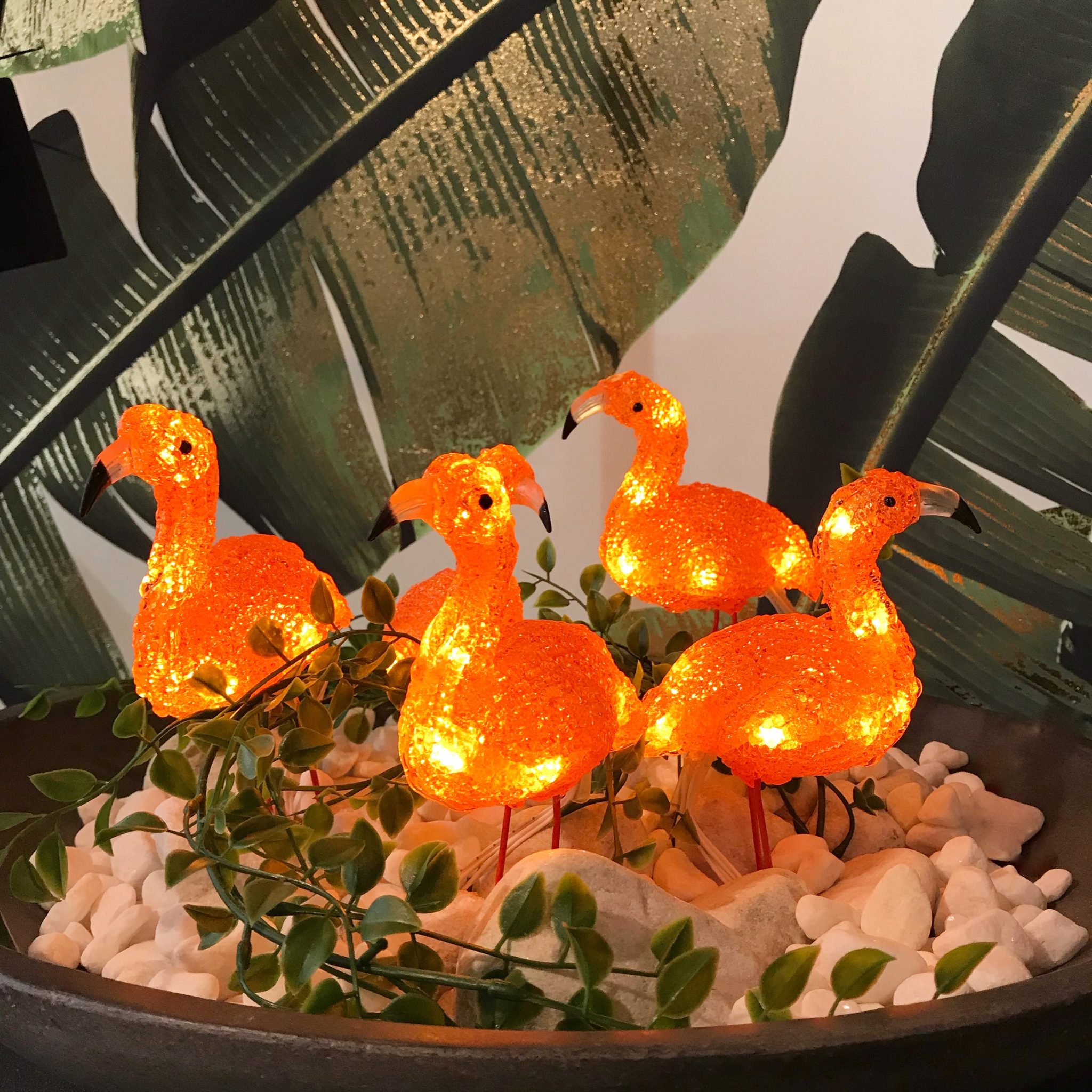 Røff opp uteplassen eller blomsterbedet med disse rosa flamingoene med LED lys.