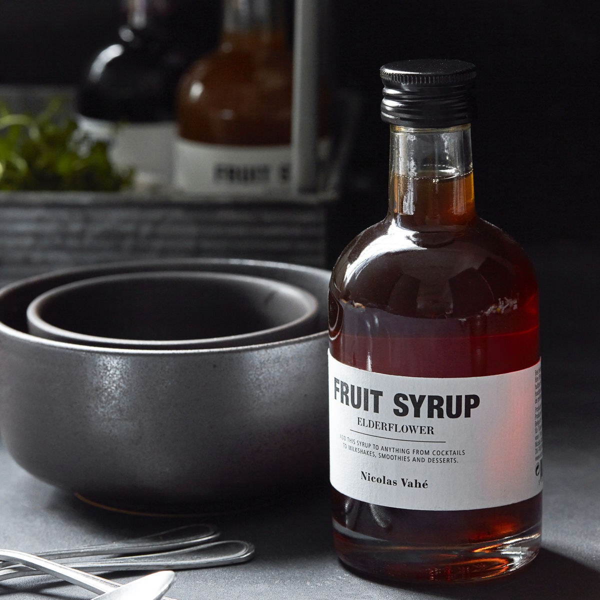 En frisk og søt sirup som er ideell til alt fra pannekaker til fruktsalat. Denne sirupen har et snev av hylleblomst, noe som bidrar til å gi rettene en forfriskende touch sammen med sødmen fra sukkeret. Uavhengig av anledning, så vil denne smakfulle sirupen bli et hit – både hos deg selv og hos dine gjester. Flasken betyr at du også kan ha sirupen stående fremme. Både på kjøkkenet eller spisebordet, vil det elegante uttrykket bidra til å dekorere på et flott vis.