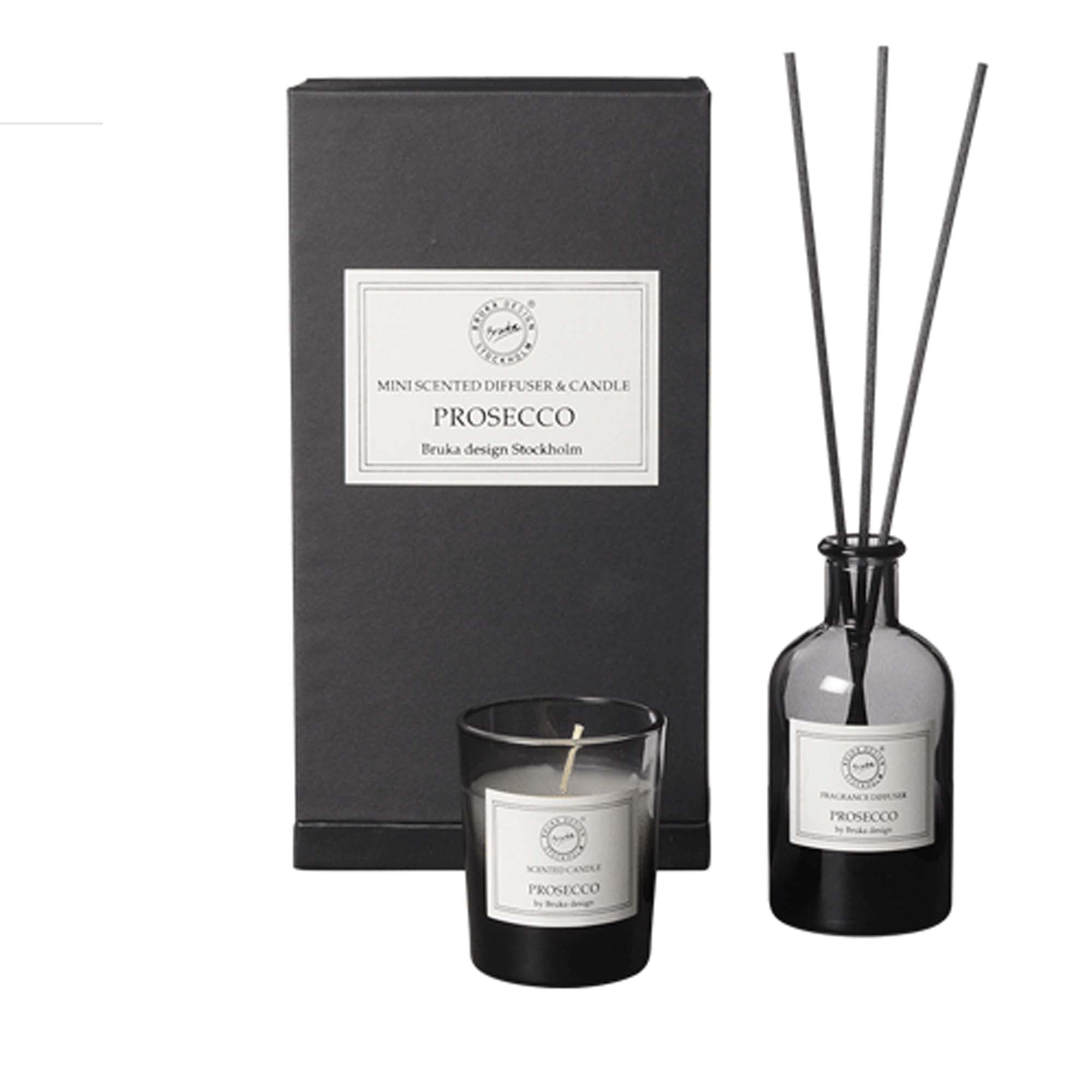 Flott gavesett i sort gaveeske med duftlys og romduft m/pinner i vår favorittduft, prosecco.