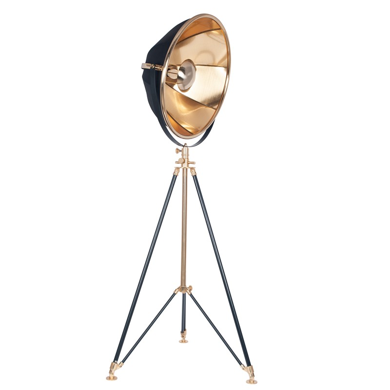 Flott gulvlampe med «wow» effekt! Sort fløyel utside, blank gull innside, ben i sort/gull og justerbare ben.
