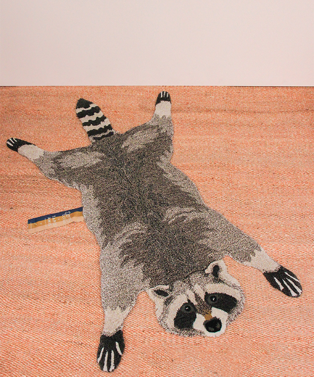Et fantastisk gulvteppe, rocky racoon. Håndlaget i India.