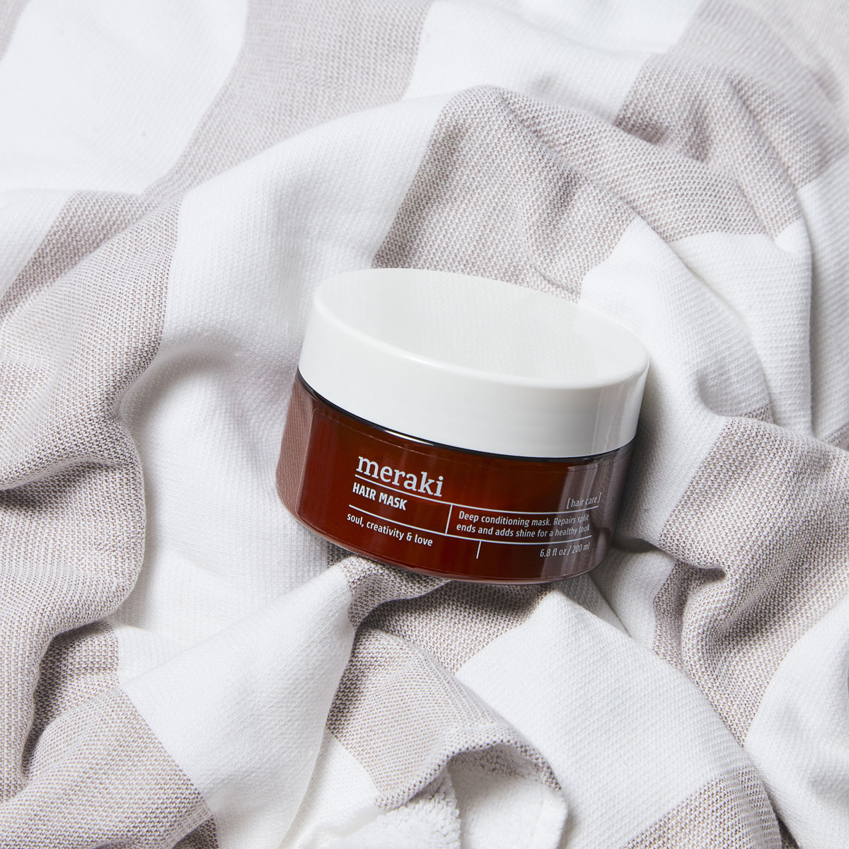 En dyptvirkende hårmaske fra Meraki som reparerer tuppene og gir håret et naturlig sunt utseende. Rik på et vegetabilsk protein som reparerer hvert hårstrå fra innsiden, er resultatet glatt hår med glans. Sheasmør, kokosnøttolje og provitamin B5 hydrerer og gir næring til håret, noe som gjør det fantastisk mykt. Masken har en moderne duft med en vri av hvite blomster, ylang ylang og vannaktig friskhet.