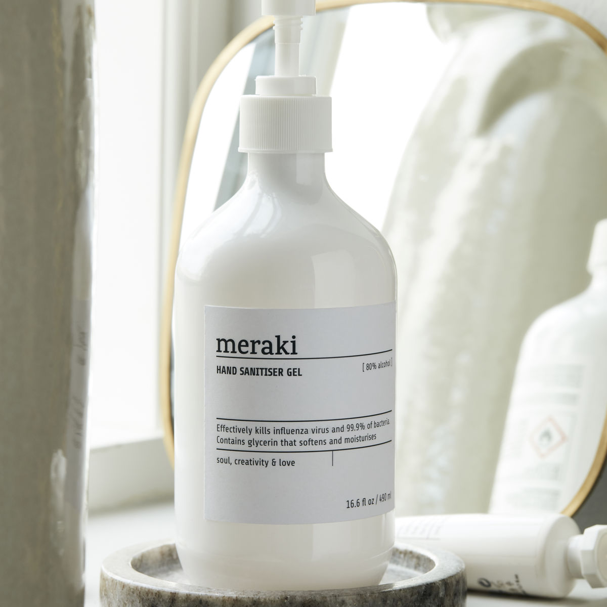 Meraki Pure Hand Sanitiser Gel er et effektivt bakteriedrepende middel med 80% alkohol. Det er en gel spirit-hånd som hjelper deg med å holde hendene rene når du ikke har tilgang til vann og såpe, eller når du trenger å få rengjort hendene. Den er beriket med glyserin, som hjelper å holde hendene myke og fuktige, og samtidig motvirker dehydrering. Den pumpes og er derfor praktisk å ha stående på kontoret eller hjemme. Bruk Meraki Pure Hand Sanitiser Gel for å opprettholde god hygiene og for å forhindre spredning av infeksjon.
