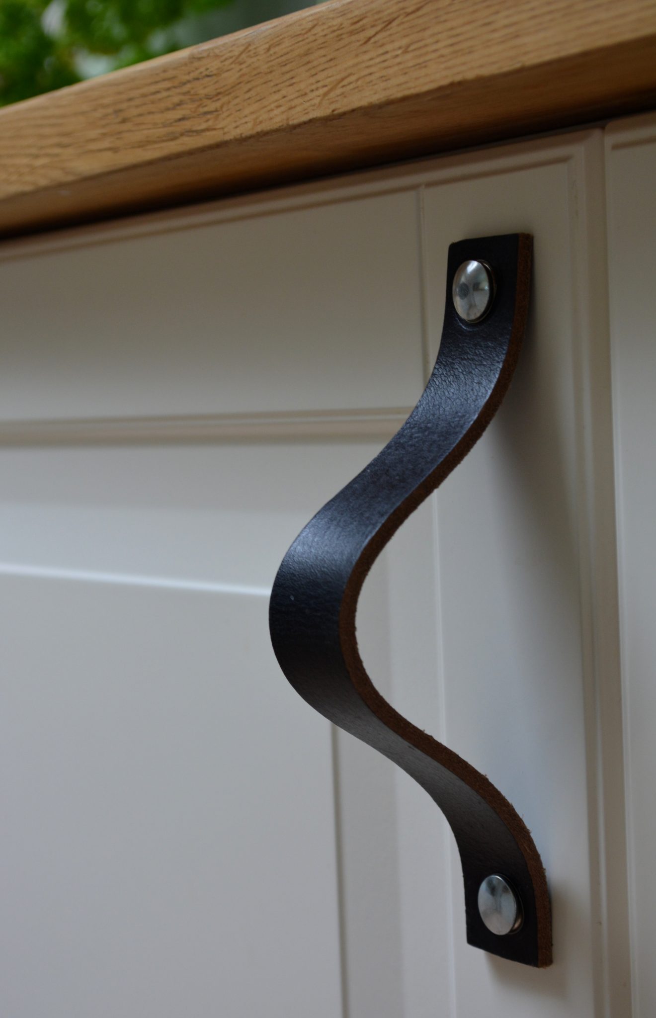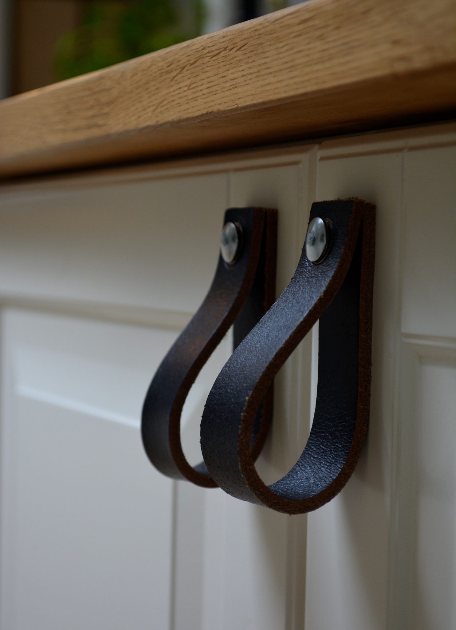 Håndtak i skinn passer til de aller fleste kjøkken- og garderobeskap. Også tøffe på et baderomsmøbel samt en kommode! Man velger om man bruker 1 eller 2 skruer. Håndtaket er det samme, følger med 2 skruer per håndtak.