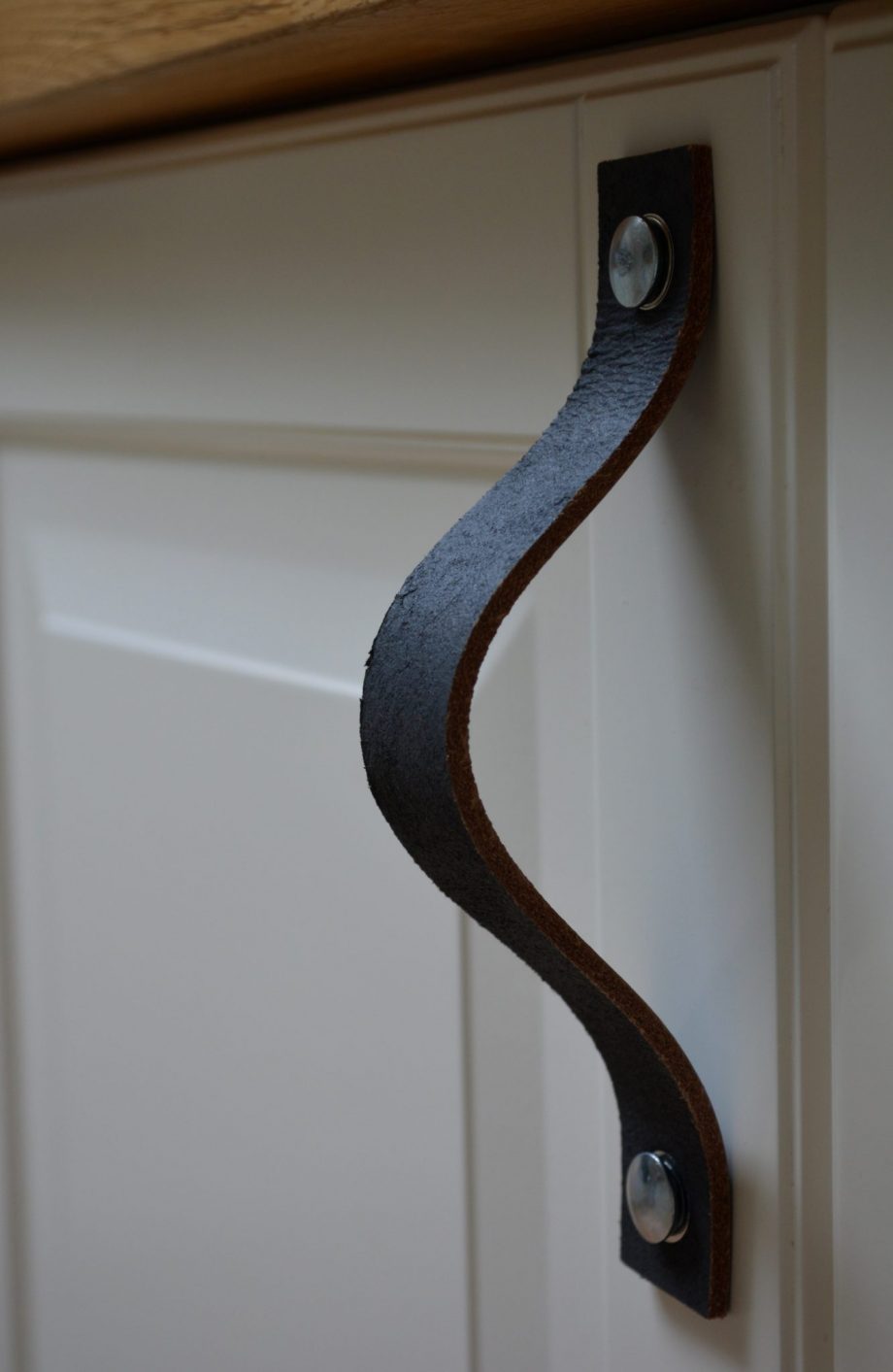 Håndtak i skinn passer til de aller fleste kjøkken- og garderobeskap. Også tøffe på et baderomsmøbel samt en kommode! Man velger om man bruker 1 eller 2 skruer. Håndtaket er det samme, følger med 2 skruer per håndtak.
