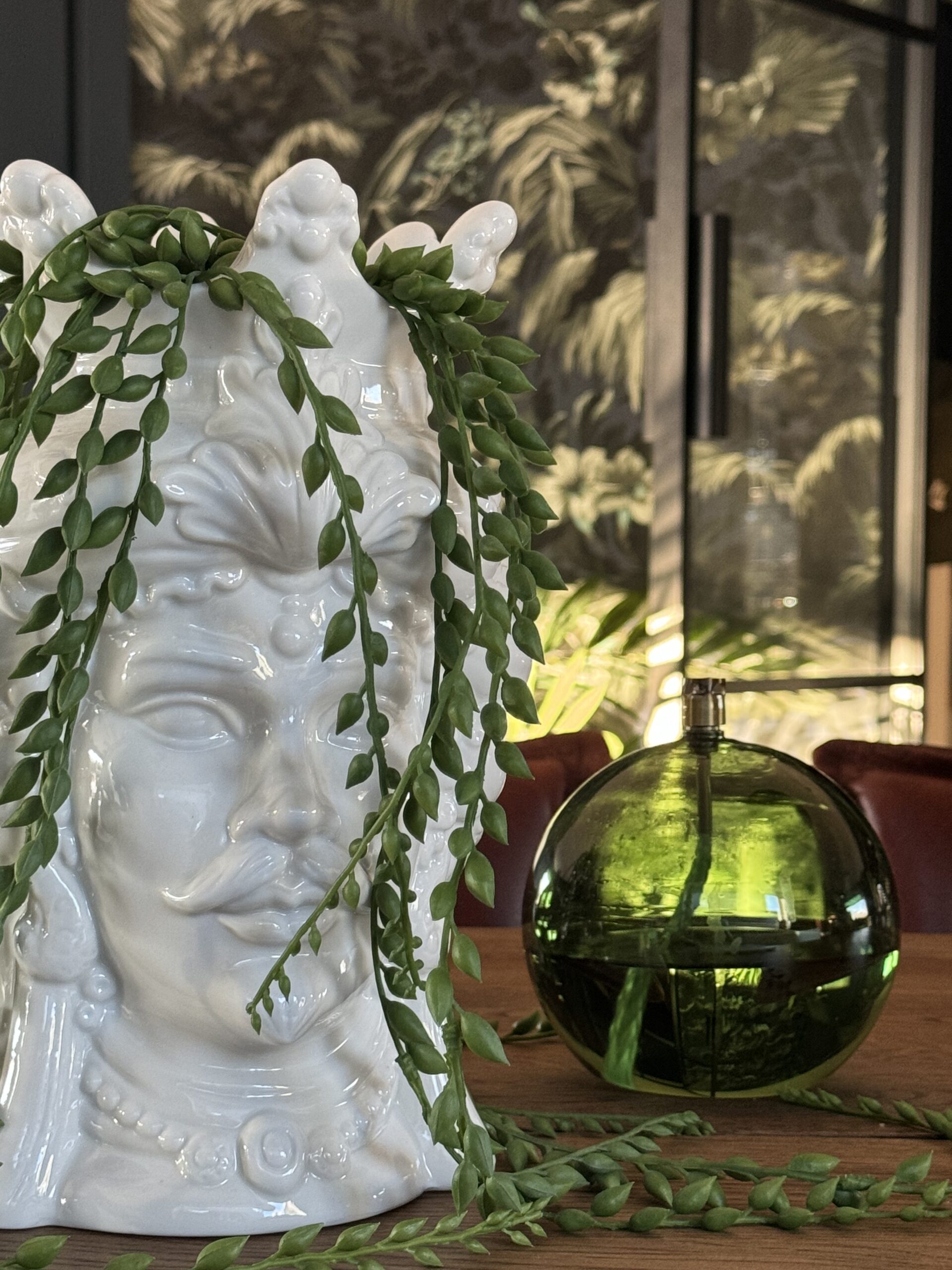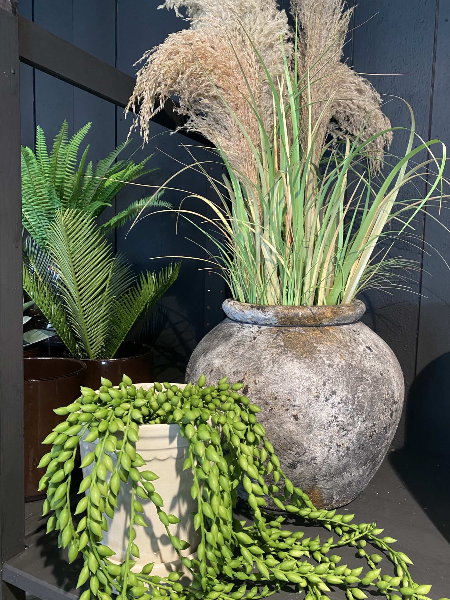 Heng den opp i stuen, på verandaen eller på kjøkkenet for å skape en avslappende og naturlig atmosfære. Den kunstige hengeplanten Senecio er enkel å vedlikeholde og vil holde seg vakker år etter år.
