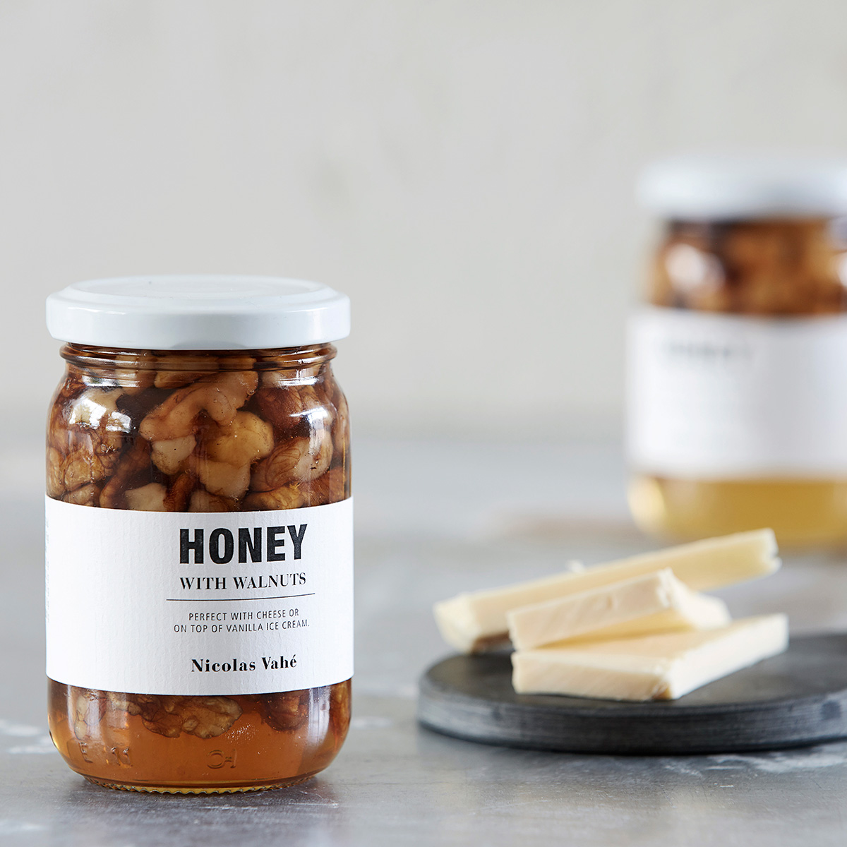 Akaci honning, fra Ungarn med smakfulle valnøtter. Perfekt sammen med ost eller over vaniljeis. Bruk den også over en salat!