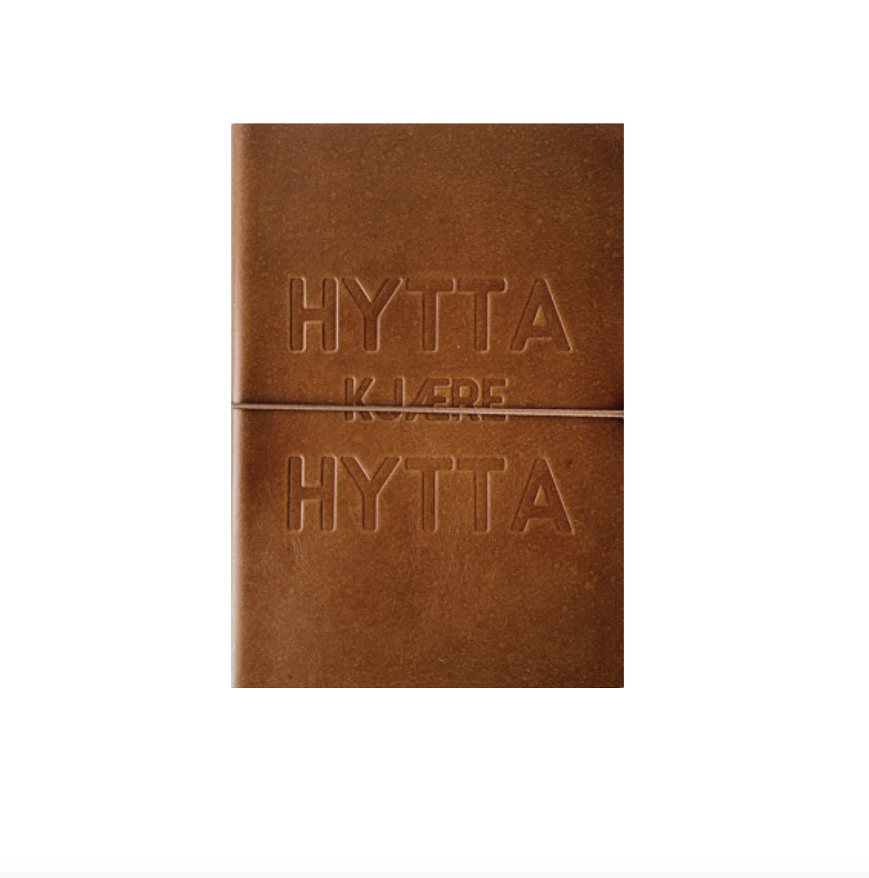 Hyttebok i skinn og blanke sider som man kan fylle med gode minner fra hytten og alle opplevelsene man har hatt med familie og venner.