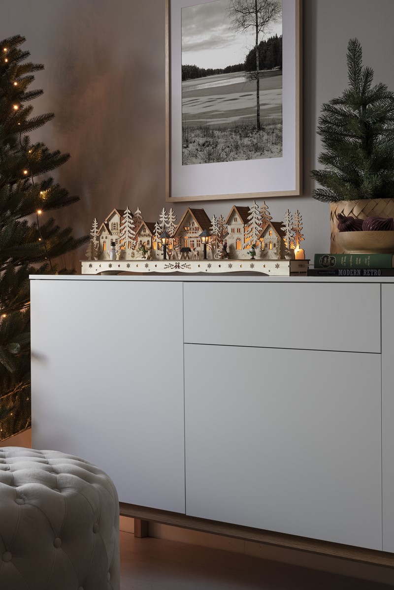 Den minner oss om gamle dager, og gir oss den magiske følelsen av julen som står for tur. Landsby med 18 varmhvite LED lys som skaper en herlig stemning.