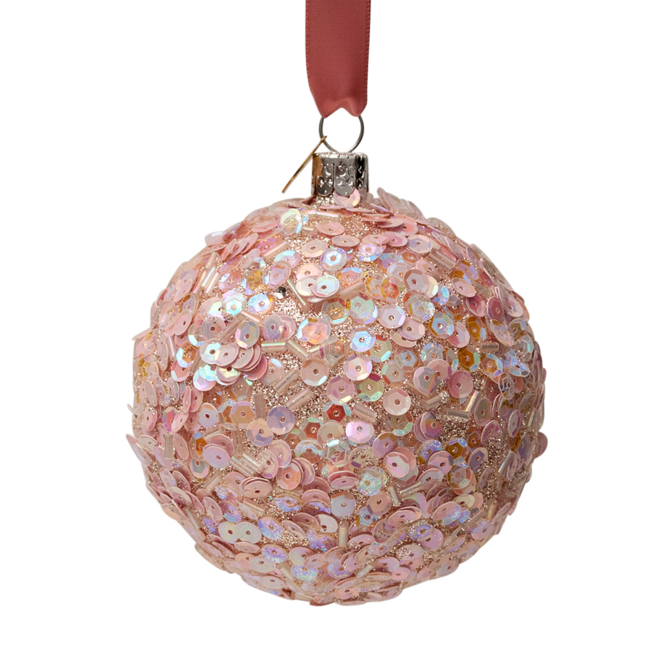 Julepynt – Bauble pink opal allover sequins