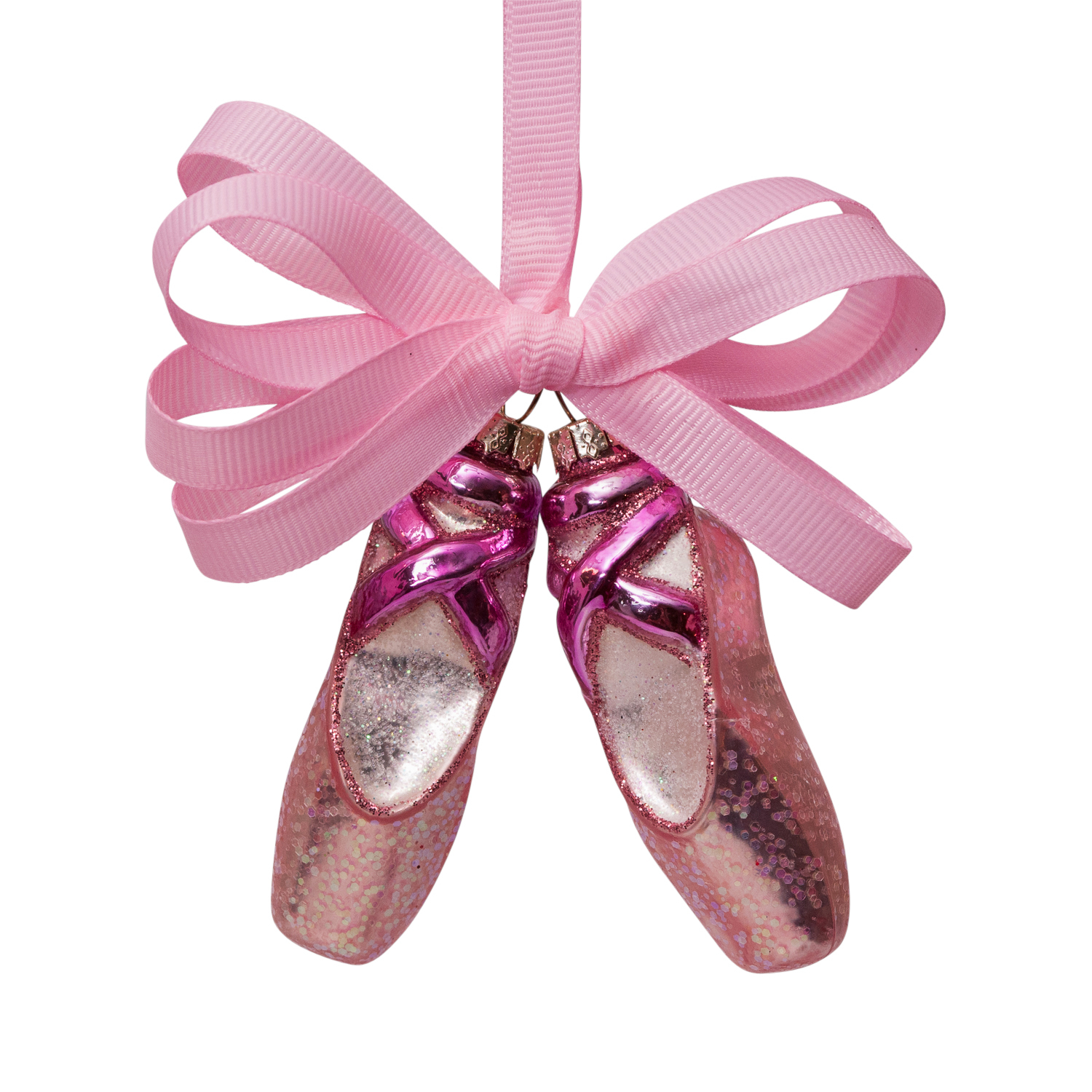 Julepynt, rosa ballettsko med bånd og glitter.