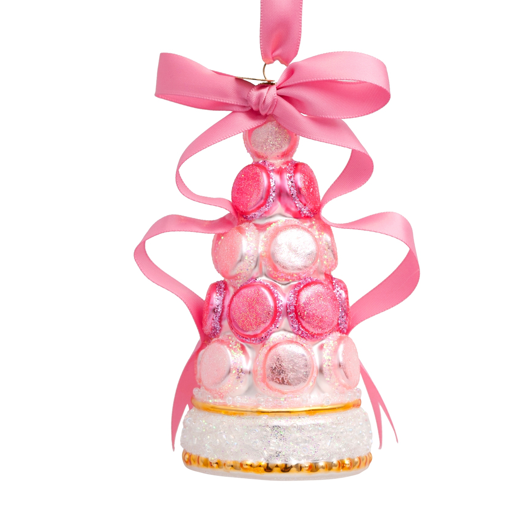 Julepynt – Glass pink macaron tower w/bow