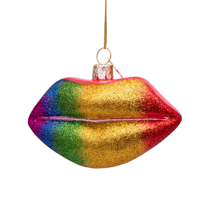 Julepynt – Glass rainbow lips w/glitter